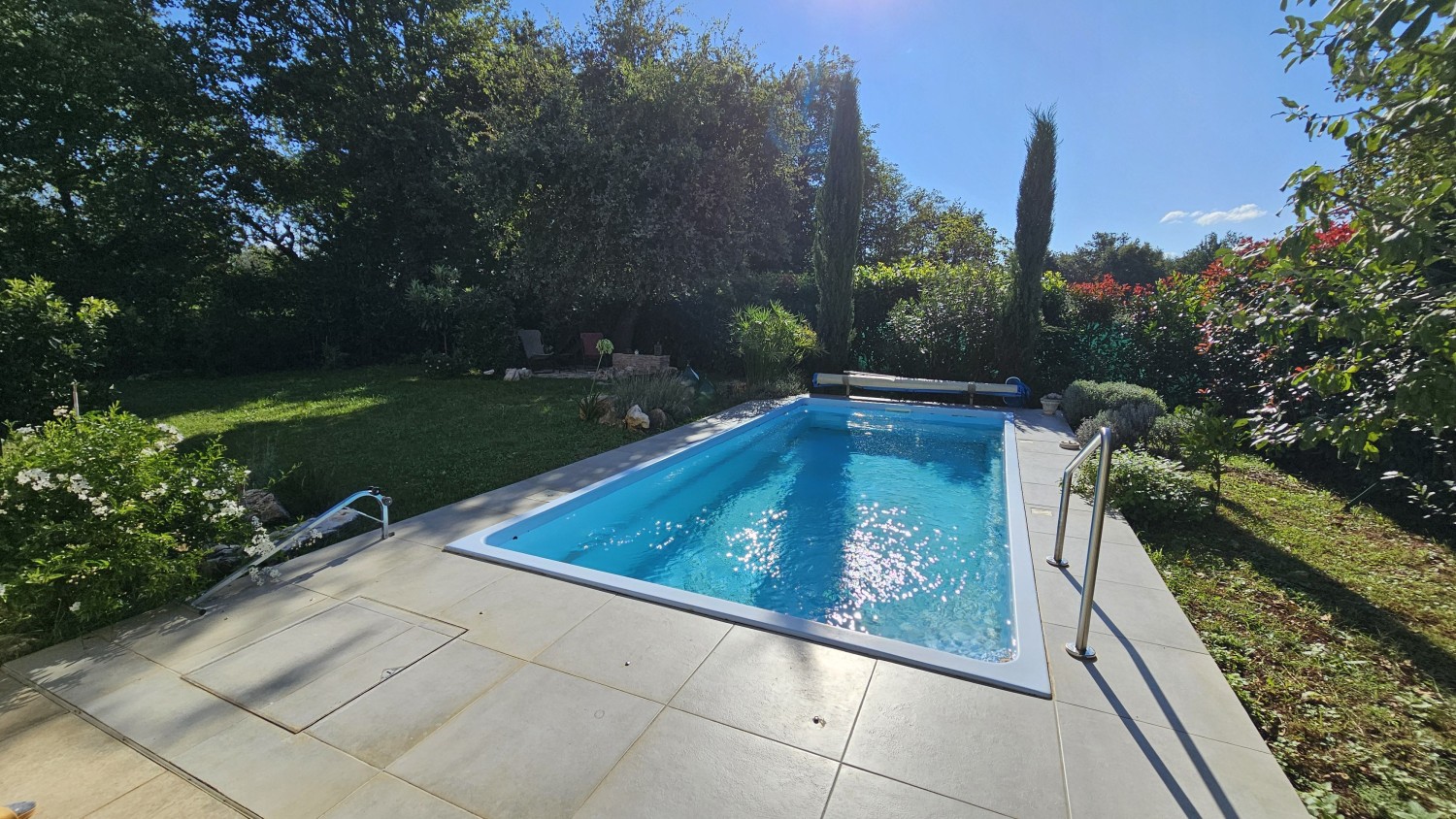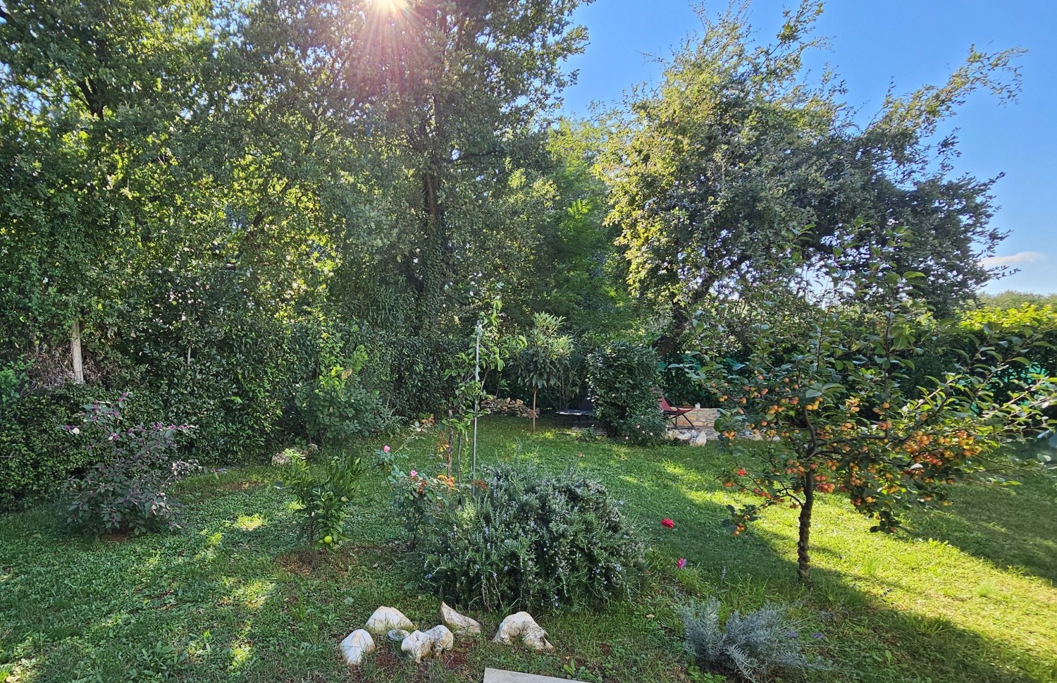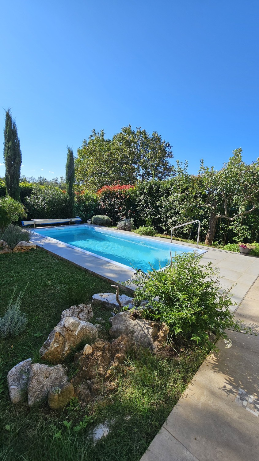 The space is beautifully sunny and leads to the pool and a landscaped grassy garden full of fruit trees, ornamental Mediterranean and flowering plants.