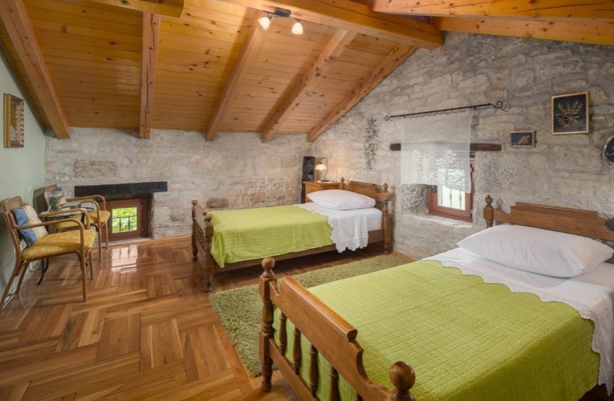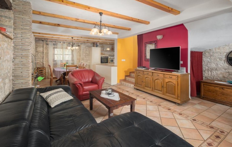 Holiday house for sale Tinjan. This house is an ideal opportunity because since 2008 it has a well-established activity of seasonal rental to tourists. The living area of this typical Istrian stone house is 193.47m2, and next to it, agricultural and urbanized land with a total area of 6,253m2 is for sale. On the ground floor there is a living room, a kitchen, and a dining room, and there is also an external bathroom on the outside of the house. The first floor has two bedrooms with attached bathrooms. There are two more bedrooms in the attic, each with its own bathroom. Next to the house there is a swimming pool of 32 m2 and a hydromassage tub for 6 people. On the outside of the house there is a covered terrace, a storage room for bicycles and a storage room, and a brick barbecue. In the yard of the house is an orchard with a children's playground, which has a slide, swings, soccer goals and a trampoline. In the immediate vicinity of the house there is a smaller object of 32 m2 with facilities for entertainment (darts, billiards, table football). The entire area of the house is surrounded by a wall.