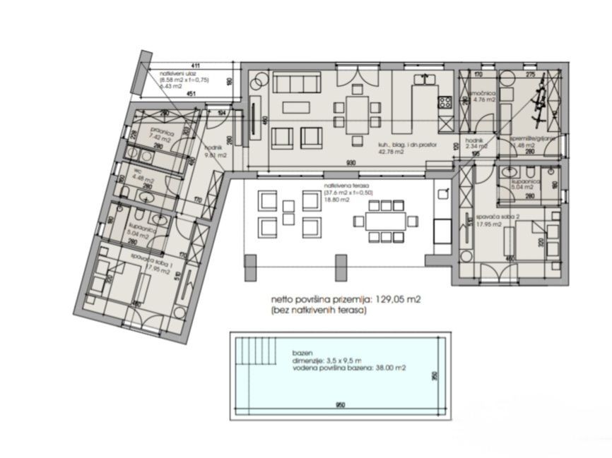According to the project, the construction of a modern Mediterranean villa with an area of 129m2 is planned