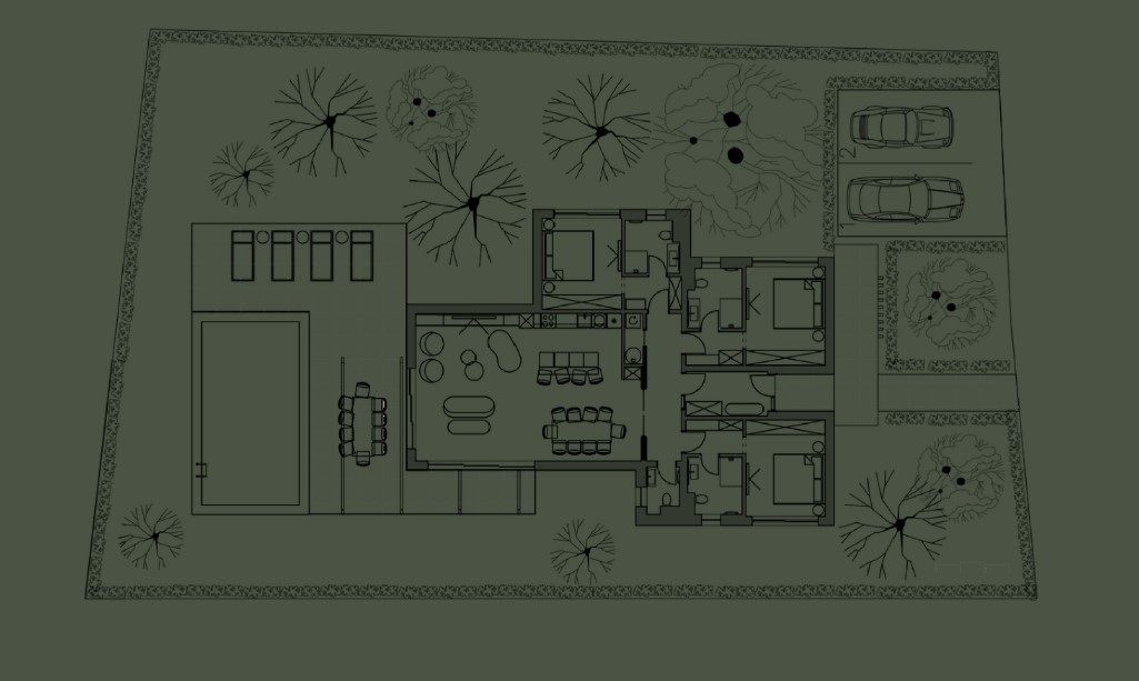 Villa B, located on a plot of 801.20 m2, is a one-story house with a gross area of 187.27 m2.
