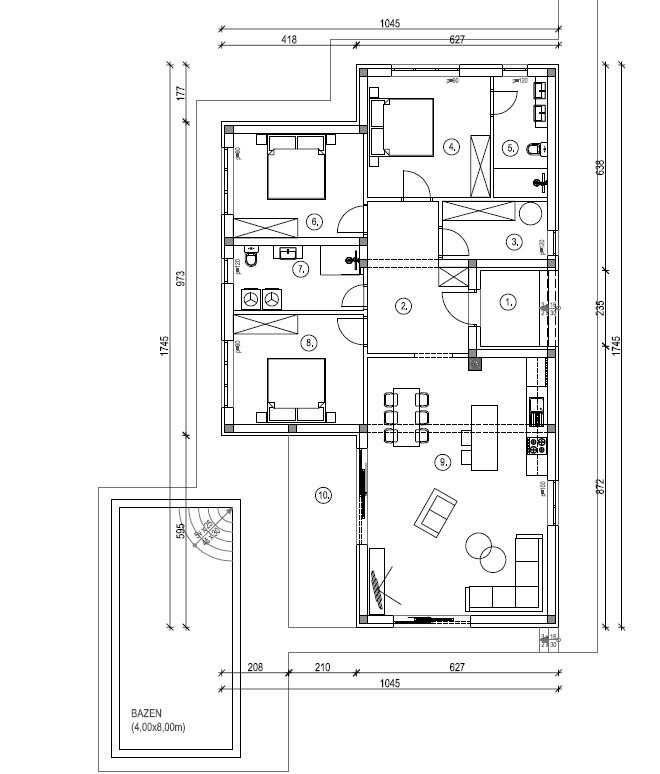 In the yard there is a swimming pool (3.50x6.50m), parking space and a large green area.