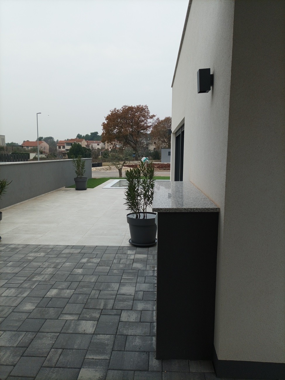 The villa is located on a landscaped yard that requires minimal maintenance. The yard is surrounded by Mediterranean plants that stay green all year round, supplied with automatic irrigation.