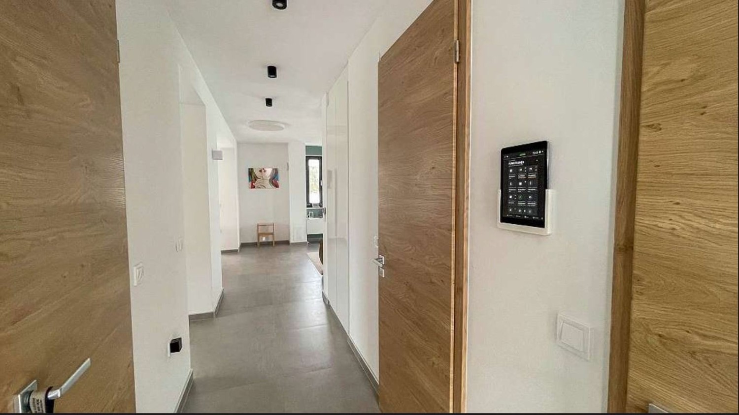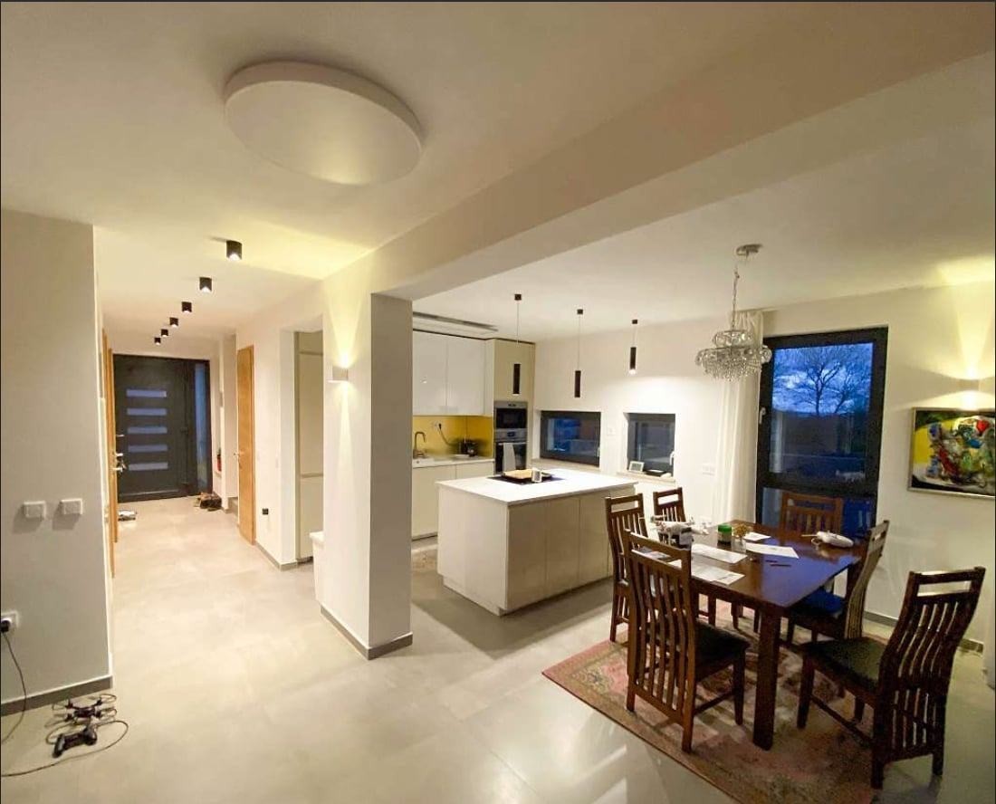 The house is equipped with Smart Home technology, a solar system, underfloor heating and cooling, air conditioning in all rooms, a heat pump, and triple-glazed windows, ensuring high energy efficiency.