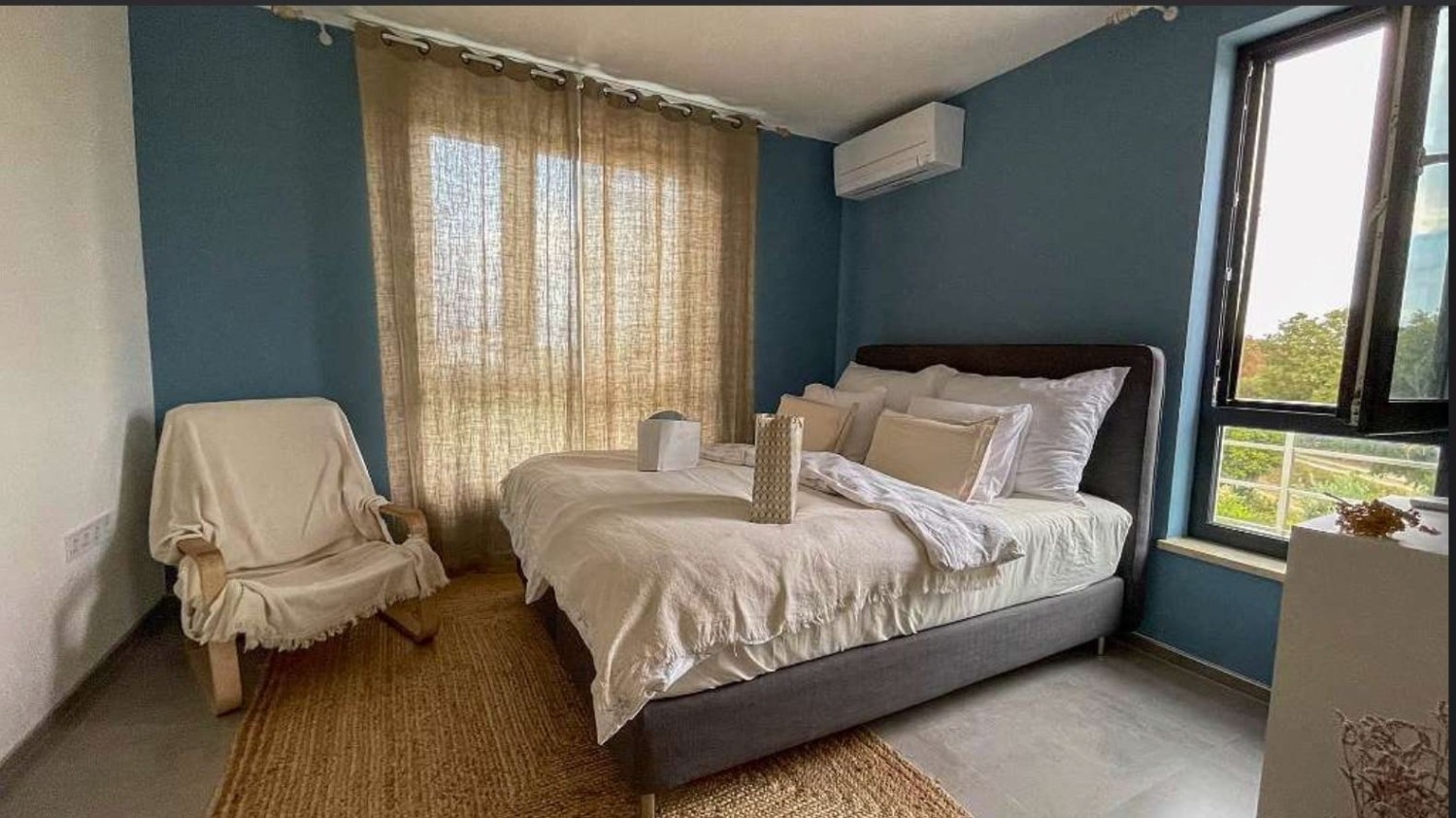 Each room has access to a balcony, and an additional highlight of the house is the large rooftop terrace with panoramic views of the sea, the old town, and nature. The south-facing garden is planted with fruit trees, lavender, and grapevines, and includes a seating area, a stone barbecue, and a solar outdoor shower.