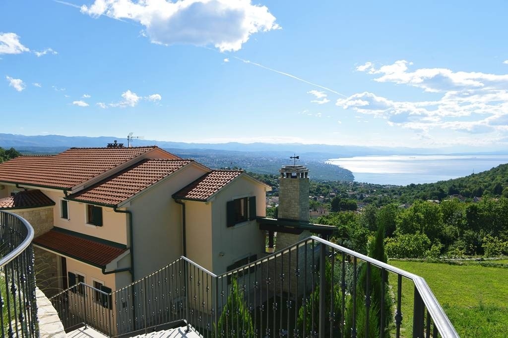 A very luxurious and exclusive villa for sale above Opatija. The villa is located in a quiet and green area, offering a unique view of the Kvarner Bay. The villa, garage, and pool cover a total of 360 m² on a 1040 m² plot. It is 4 km from the center of Opatija and only 1.5 km as the crow flies from the sea.