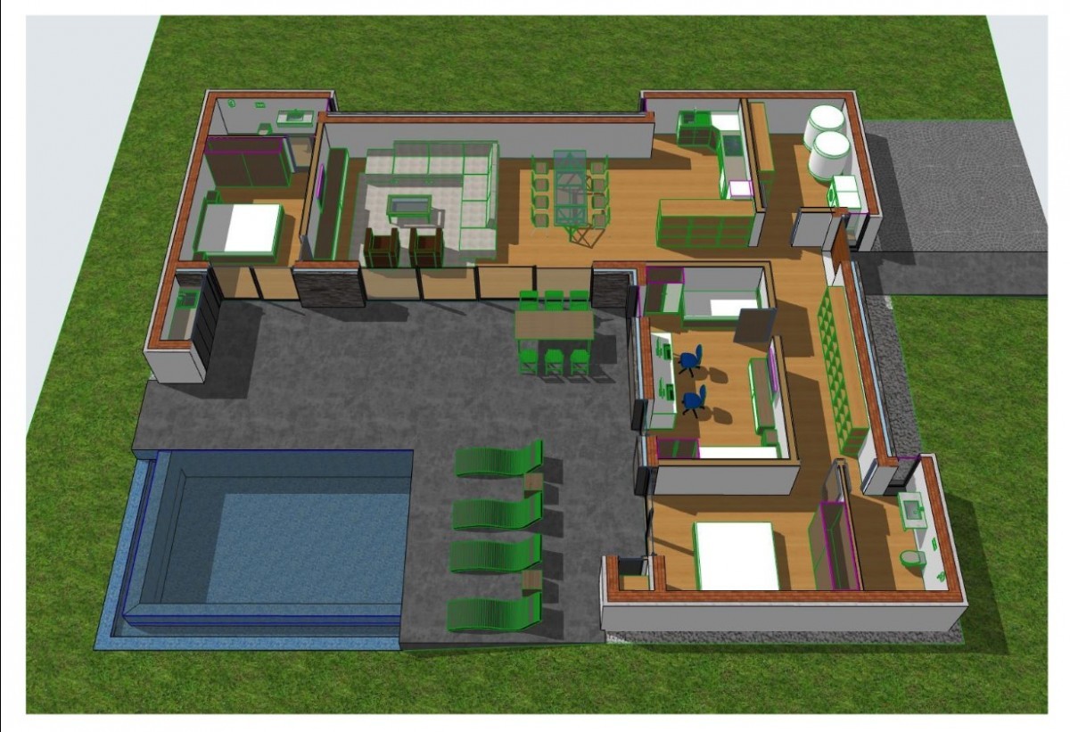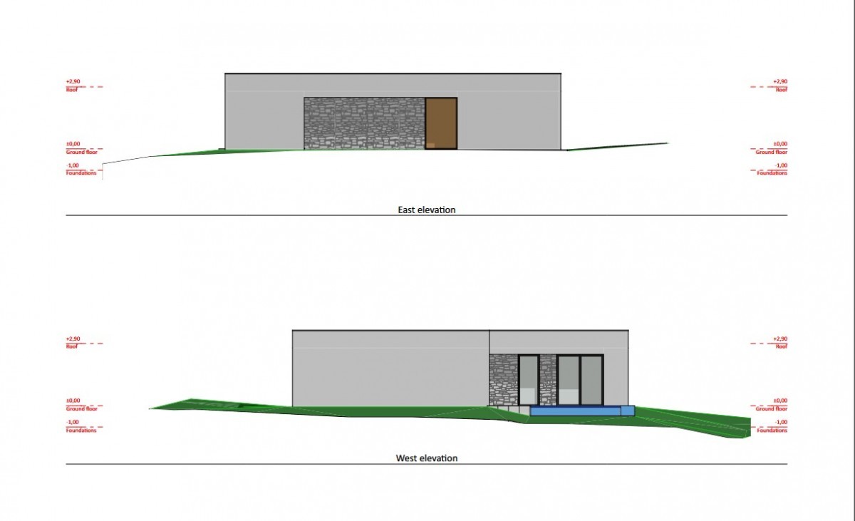 The villa will consist of a spacious living room with access to the terrace, kitchen, dining area, two bedrooms, two bathrooms, and laundry room.