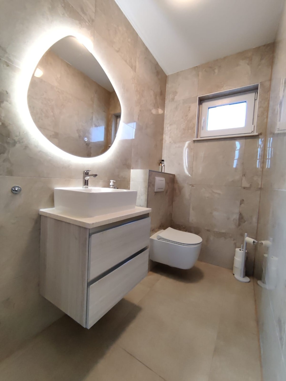 For sale is a new, modern detached house in Banjole, covering an area of 200 m², situated on a plot of 700 m². The house spans three levels: ground floor, first floor, and second floor, making it ideal for family living or luxurious vacations near the sea.