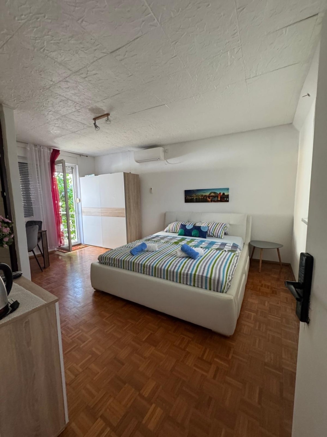 From the first floor there is access to the terrace, through which the external stairs lead down to the yard and the other part of the house. On the ground floor of the second part of the house, there is a living room and a kitchen.