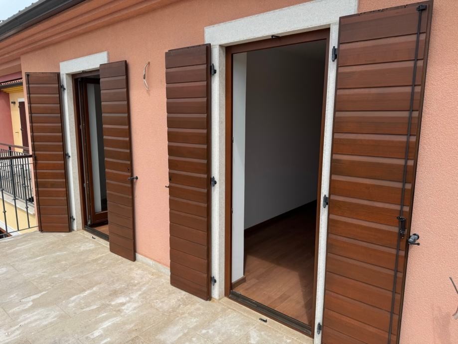 The apartment also comes with a practical storage room, ideal for storing garden furniture, bicycles, and other equipment, as well as two private parking spaces within the yard.