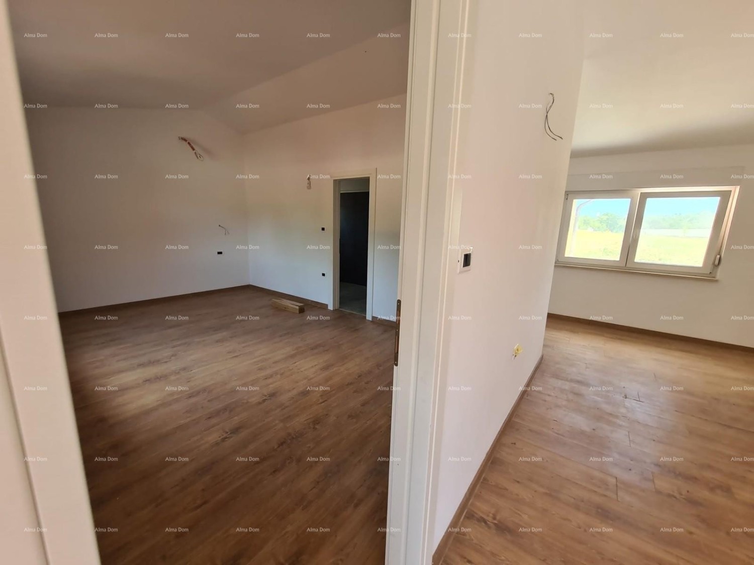 For sale: House in Svetvinčenat. The ground floor of the house is 100 m², while the first floor is 90 m². The house consists of three bedrooms, each with its own bathroom. There are also two additional toilets, a kitchen, a dining room, a living room, and a large swimming pool. The house will be equipped with heat pumps throughout all rooms. Air conditioning will be installed in every room. The property includes a yard of 1,036 m².