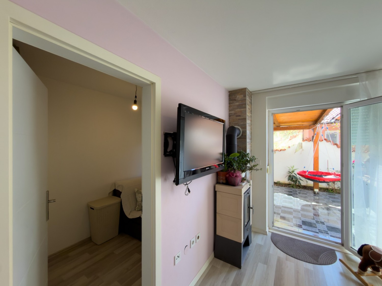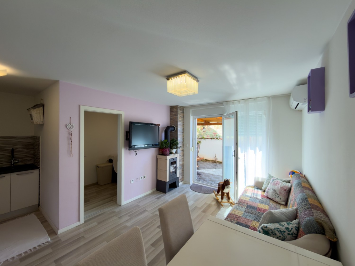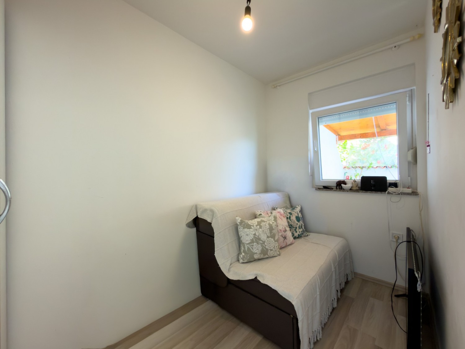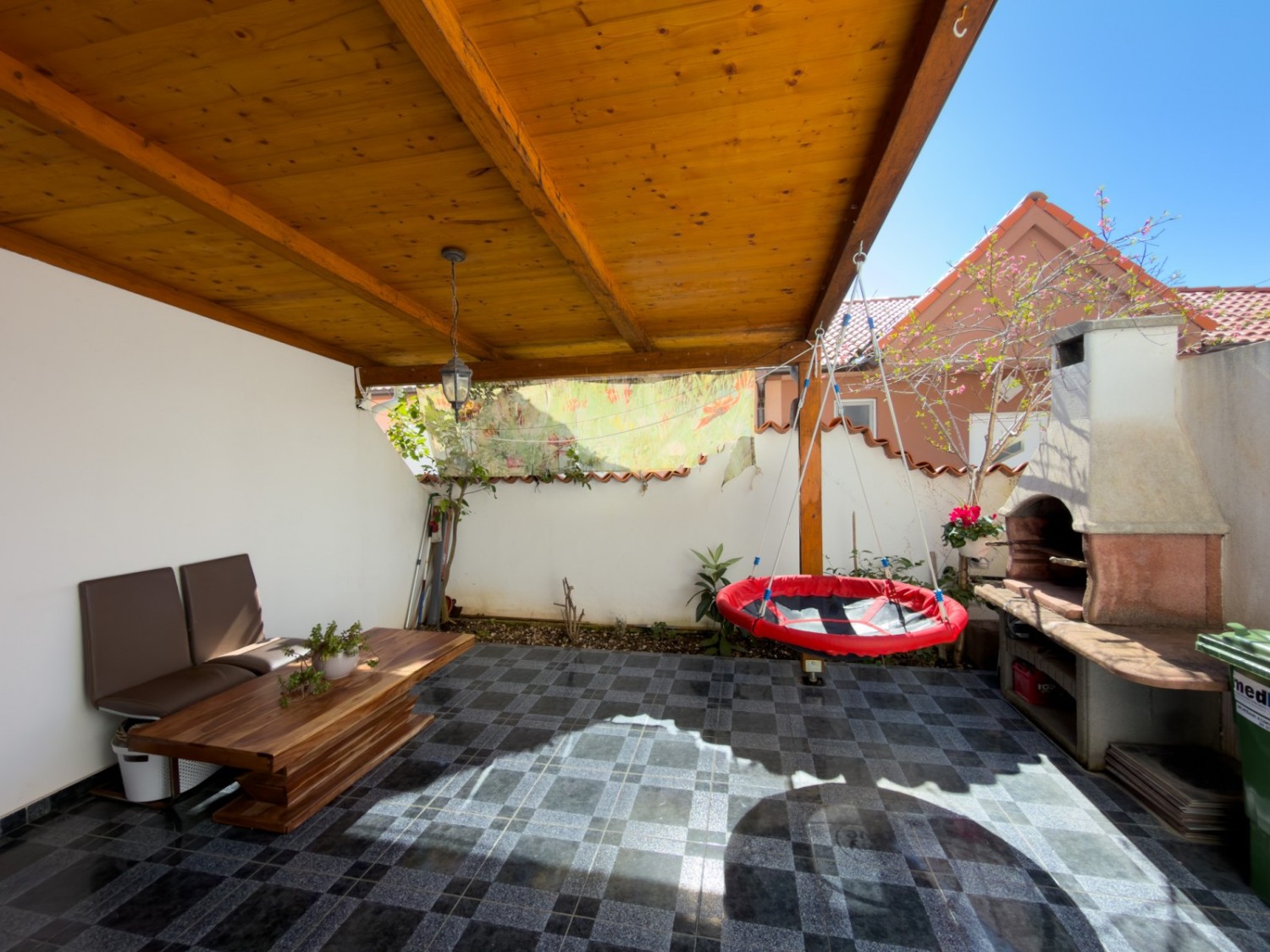 The apartment is furnished and is being sold as such. The garden belongs to the apartment through condominium ownership, as well as a parking space, but the building does not have a usage permit!
