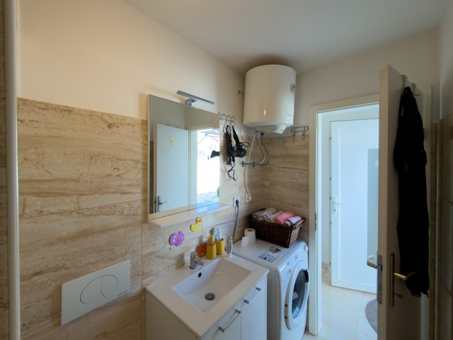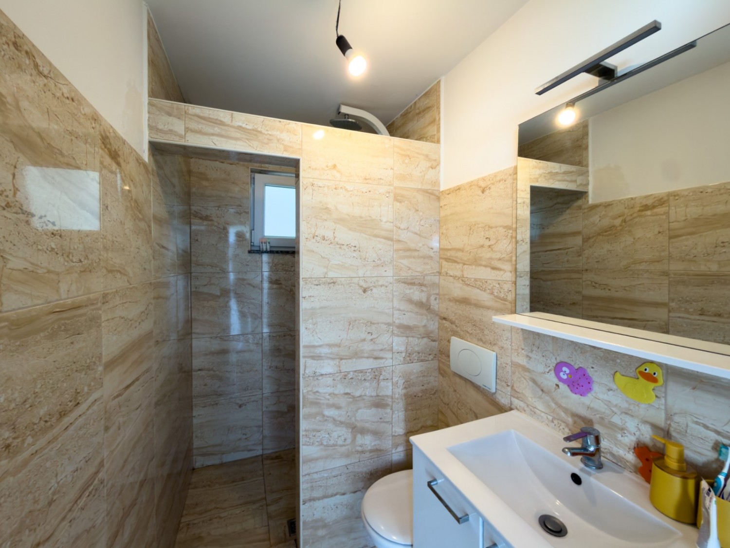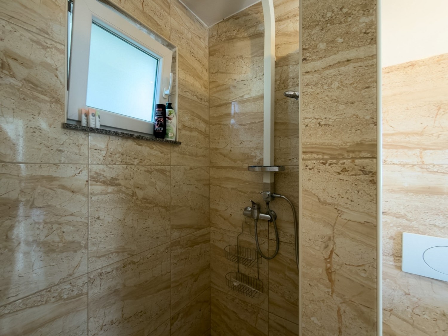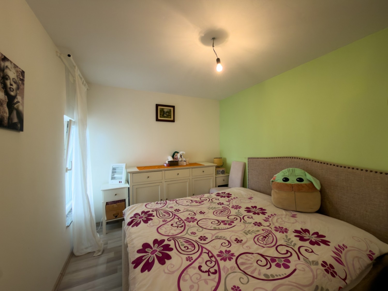 The apartment is furnished and is being sold as such. The garden belongs to the apartment through condominium ownership, as well as a parking space, but the building does not have a usage permit!