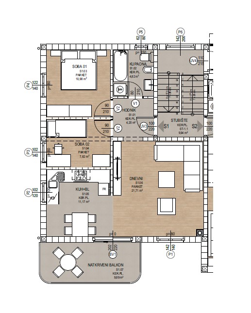 Apartment S1 – Two-bedroom apartment with living room