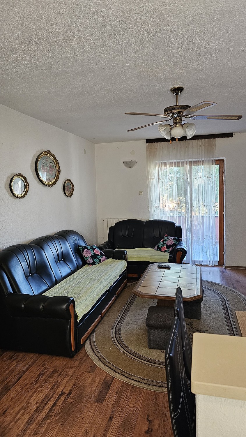 Veći stan sastoji se od natkrivene ulazne terase te ulaznog hola,dvije spavaće sobe,kupatilo,kuhinja i dnevni boravak sa izlazom na terasu.