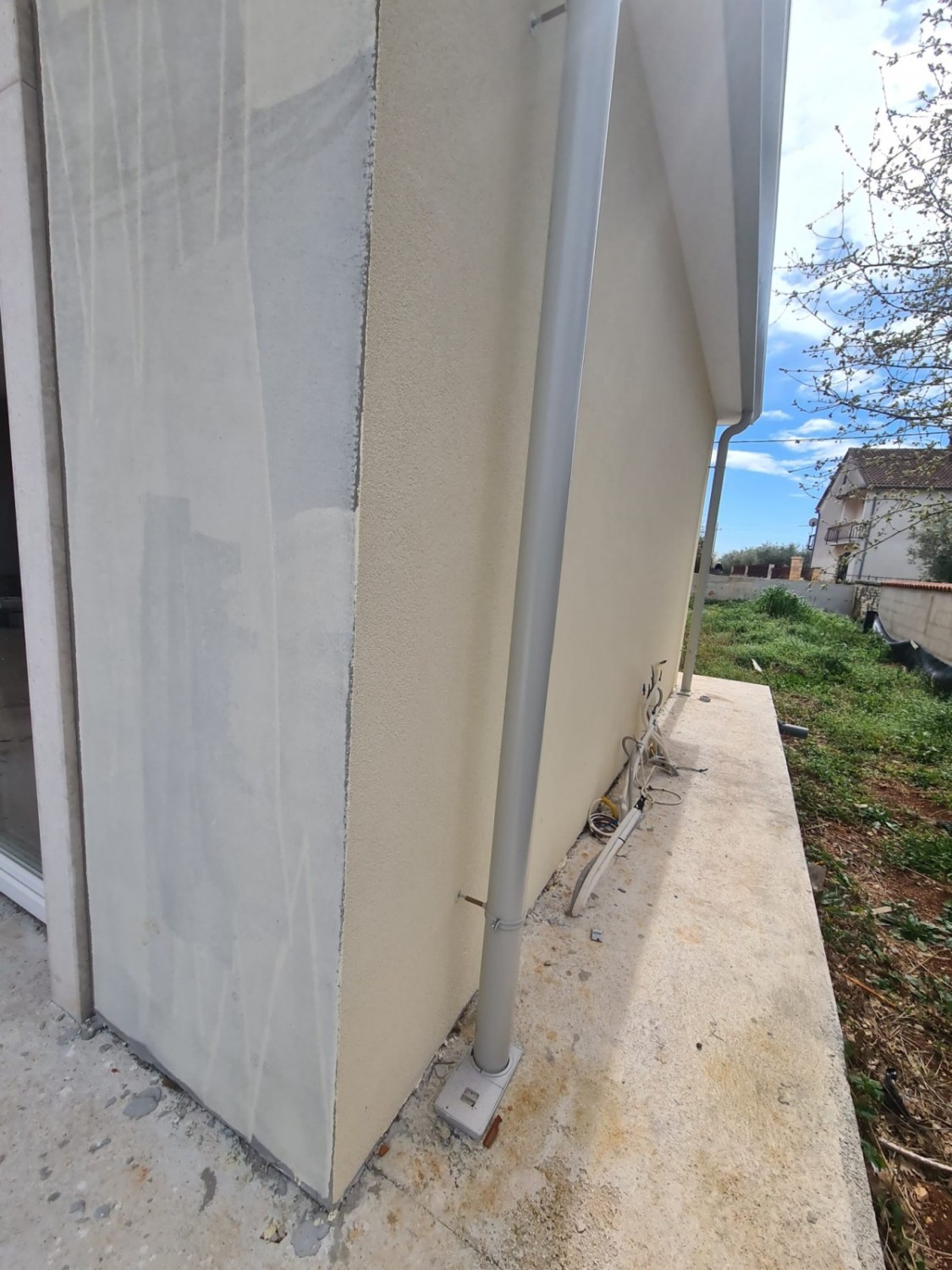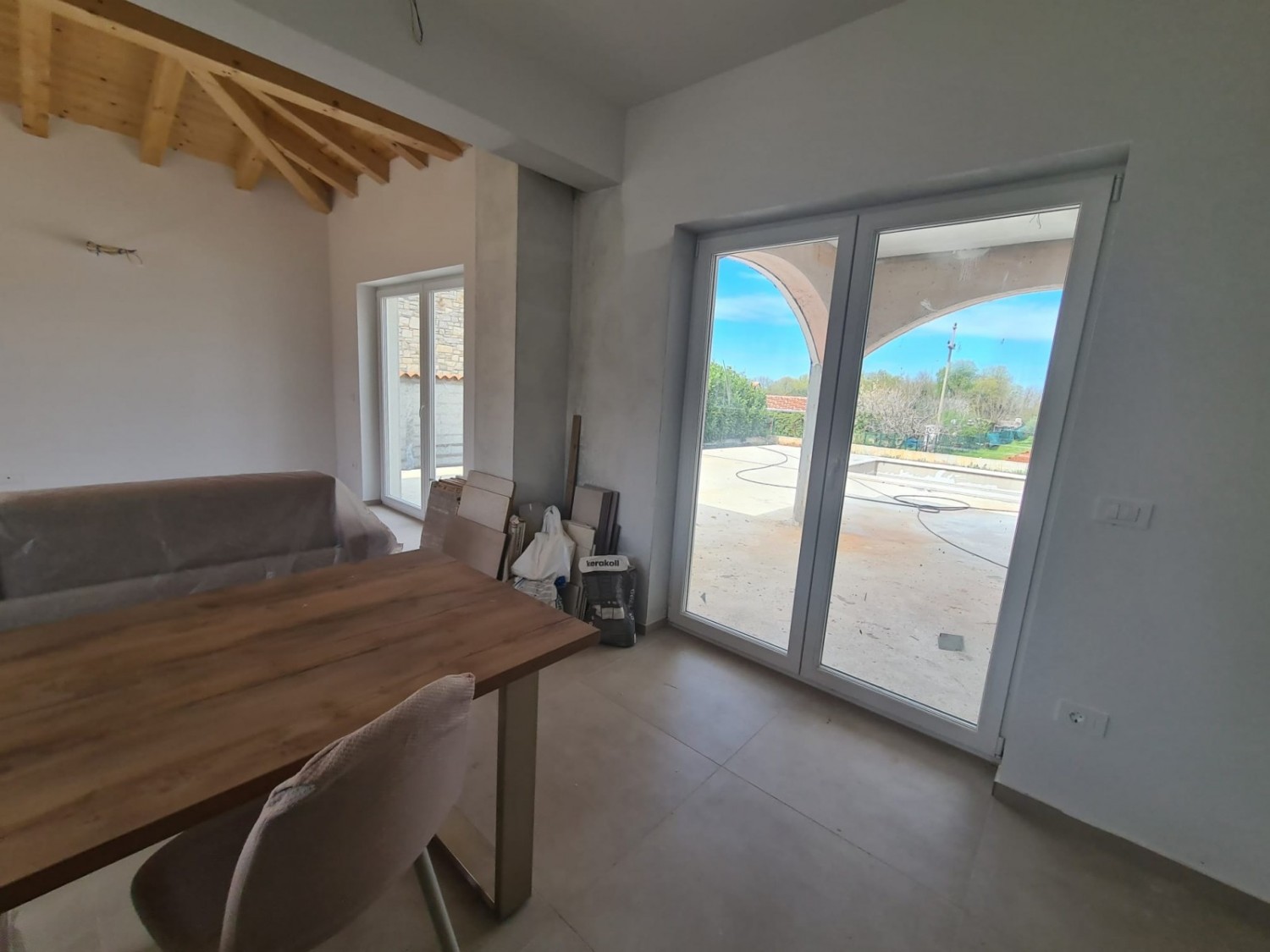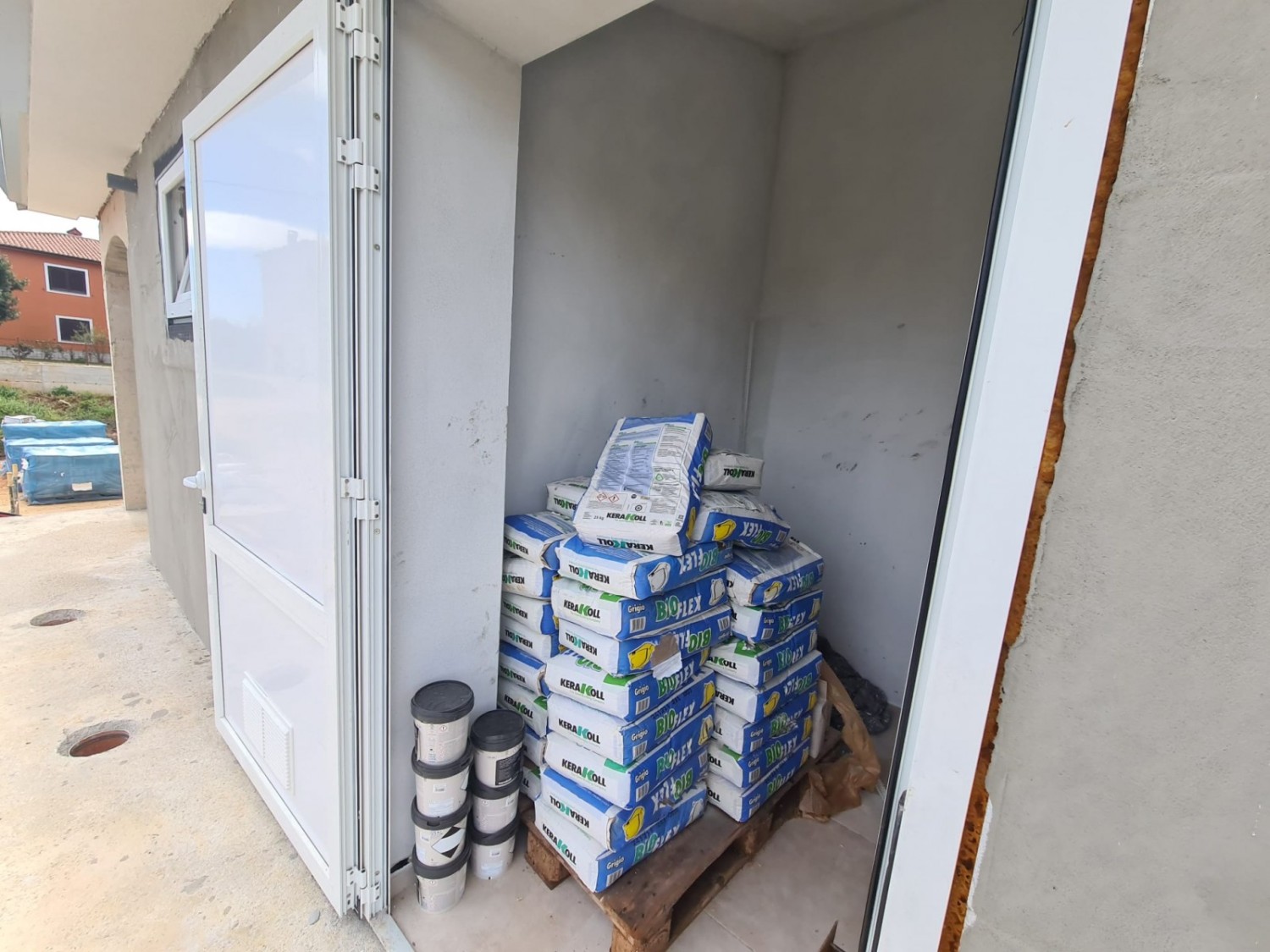 Vila je opremljena troslojnom PVC vanjskom stolarijom i kvalitetnom unutarnjom stolarijom. Fasada je termoizolacijska, debljine 10 cm, s detaljima od istarskog kamena. Ugrađene su vrhunske keramika i sanitarije, a predviđena je i priprema za podno grijanje putem dizalice topline. Okućnica je popločana, a bazen dimenzija 9 x 4 metra opremljen je pločicama i kompletnom bazenskom tehnikom.