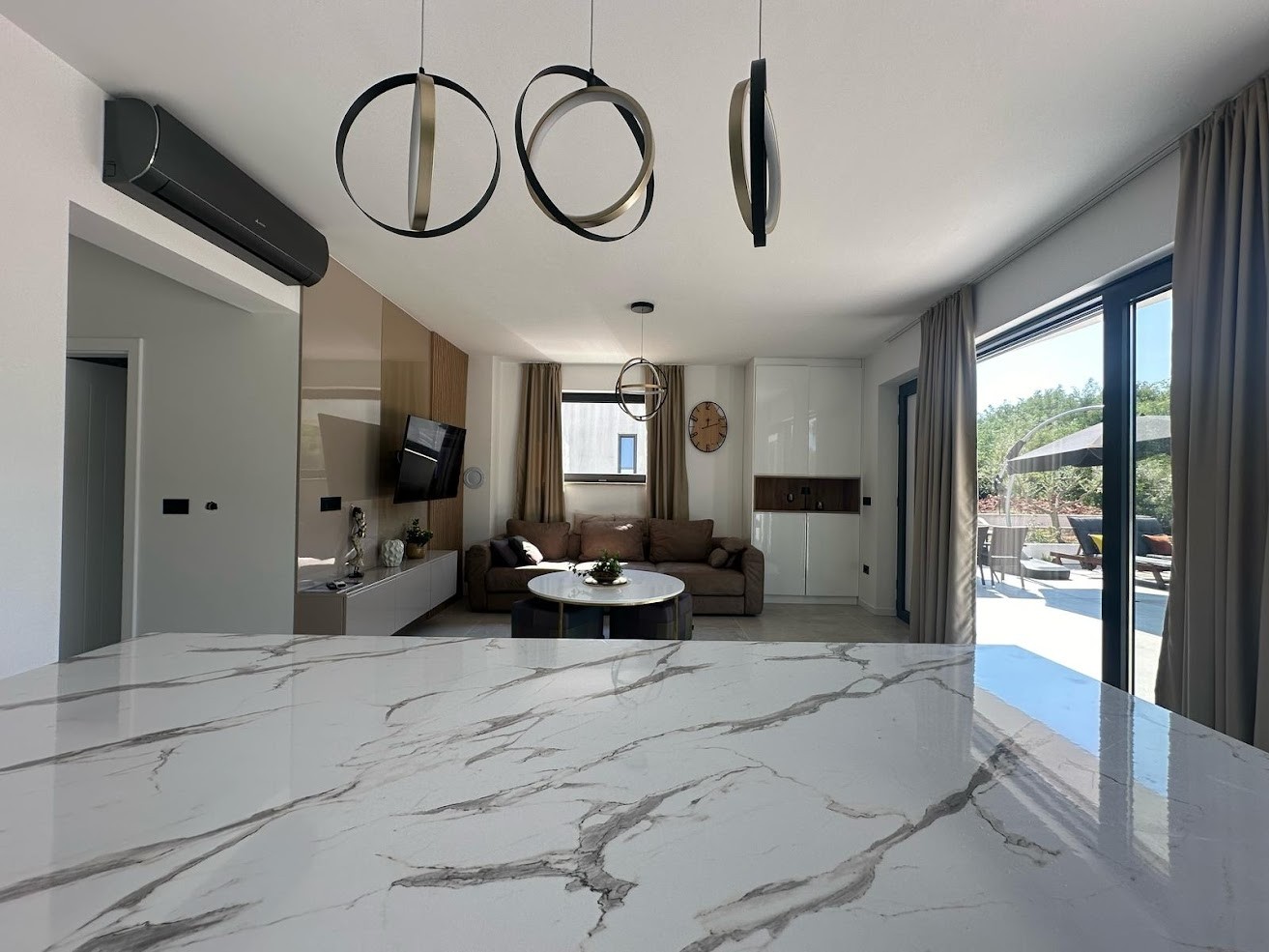 Vila se prodaje u potpunosti namještena i opremljena – odmah spremna za useljenje ili iznajmljivanje. Svaka prostorija ima klima jedinicu i podno grijanje, a pažljivo birani materijali i moderan dizajn čine boravak u kući izuzetno ugodnim i profinjenim.