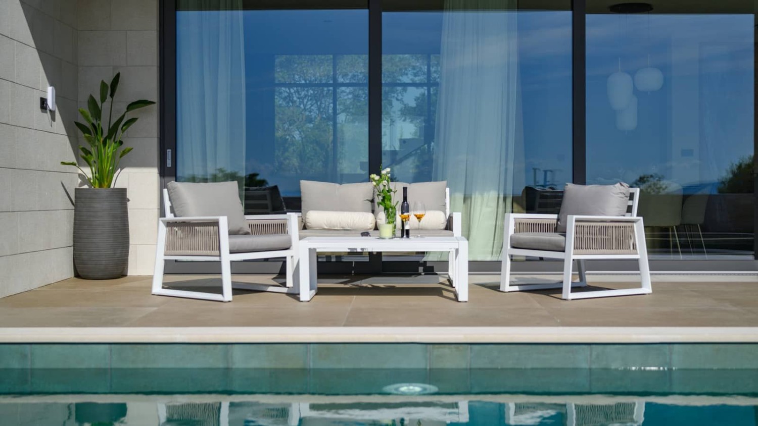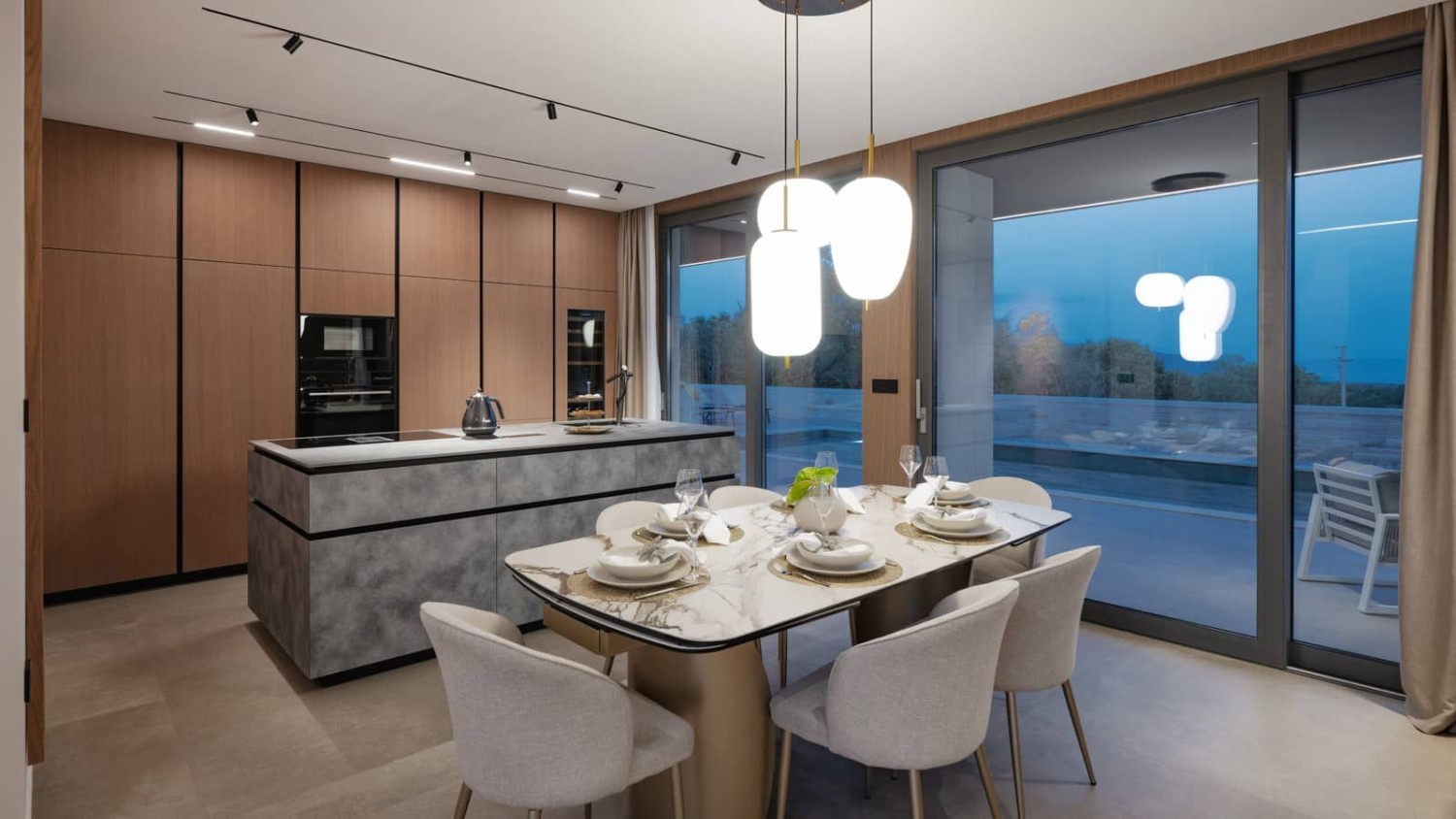 Ova moderna Villa nudi tri ukusno uređene spavaće sobe, tri elegantne kupaone, te prostrani dnevni boravak povezan s potpuno opremljenom kuhinjom.