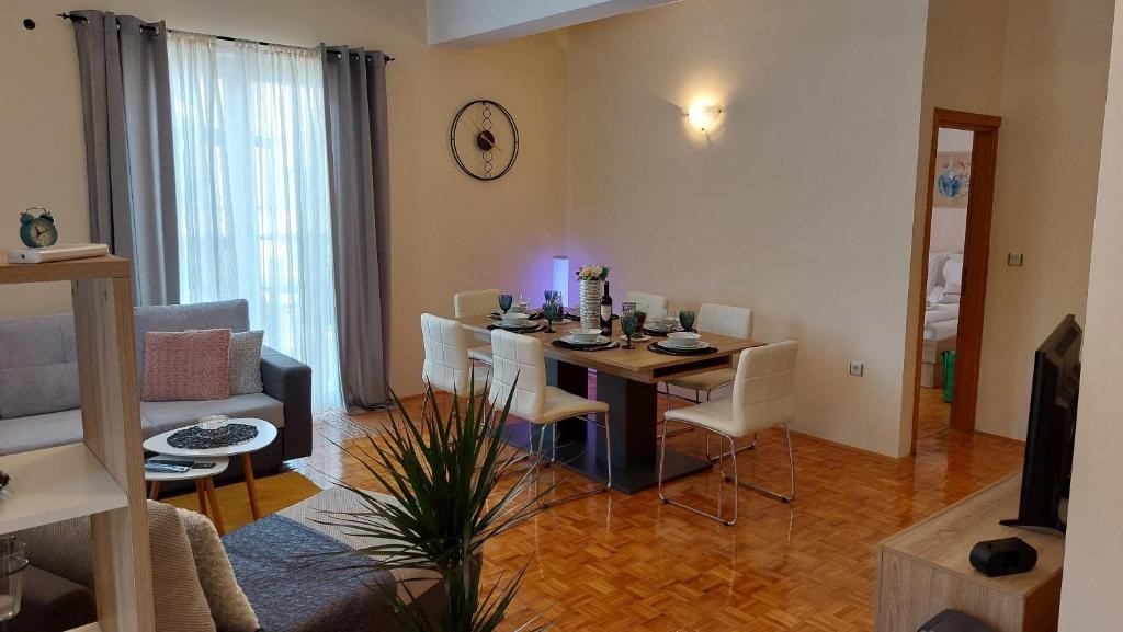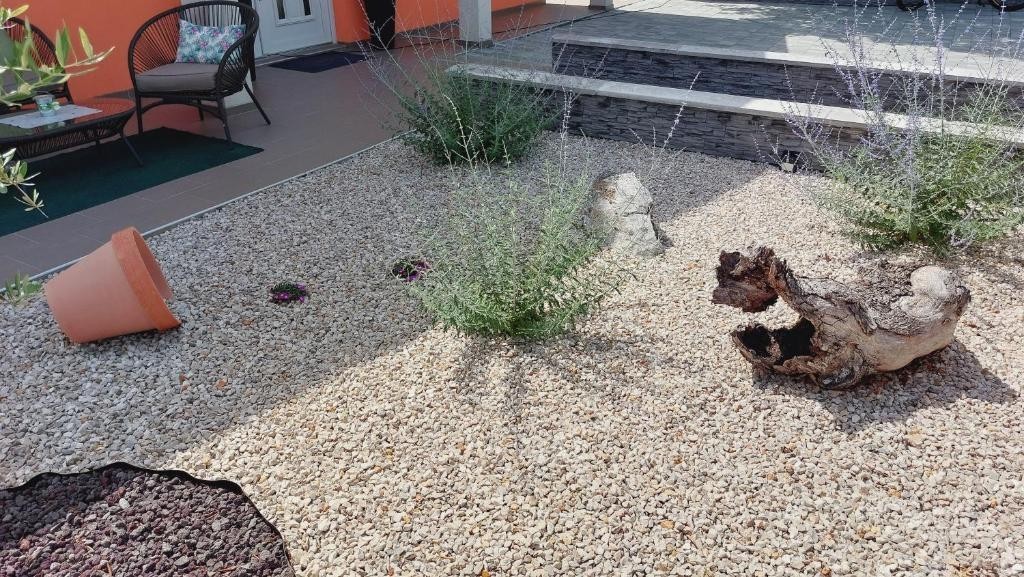 Objekt ima lijepu terasu i popločani dio dvorišta s pogledom na planine, kao i uređeni vrt s opremom za roštilj, što pruža savršeno mjesto za odmor i druženje na otvorenom.