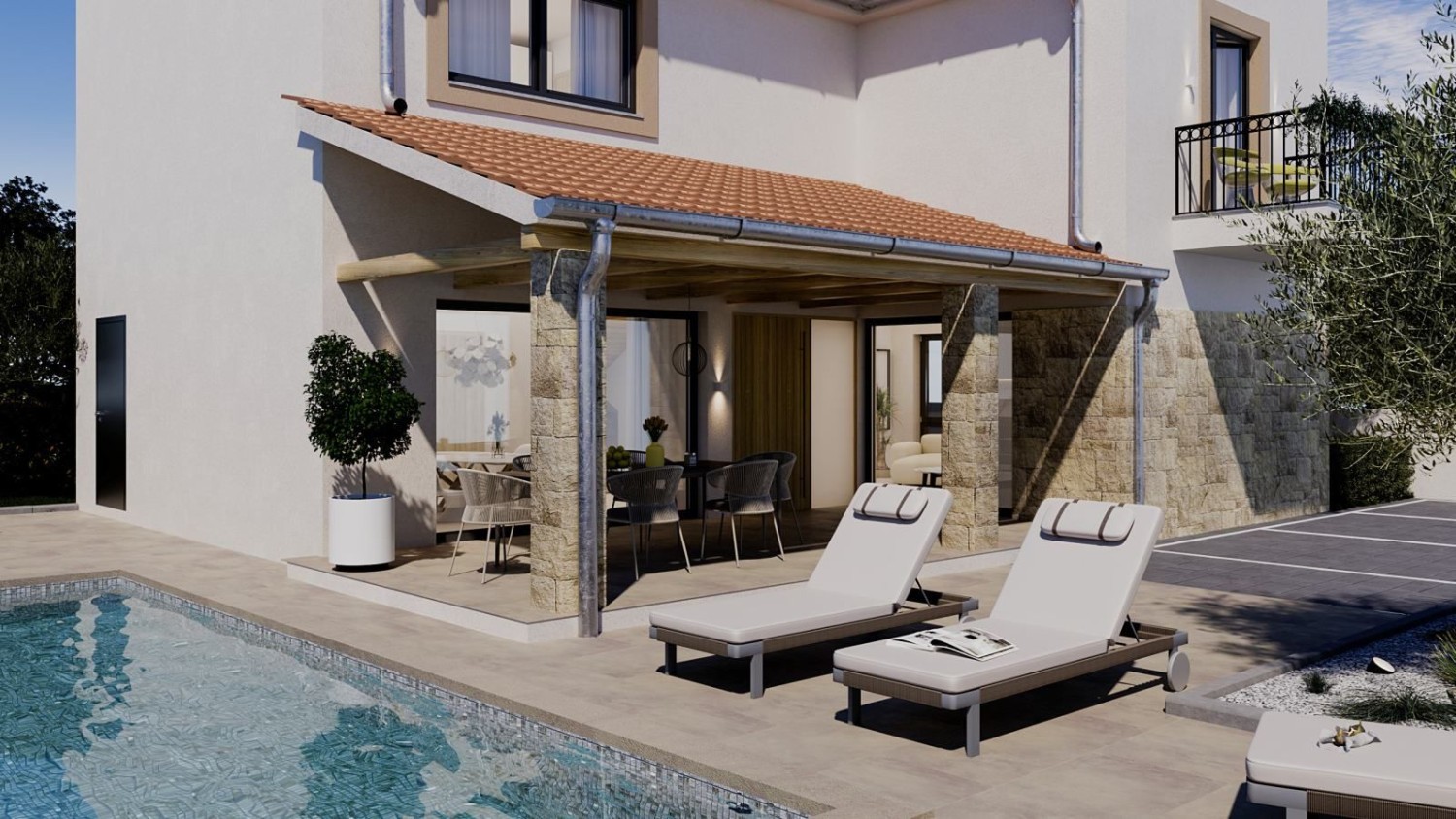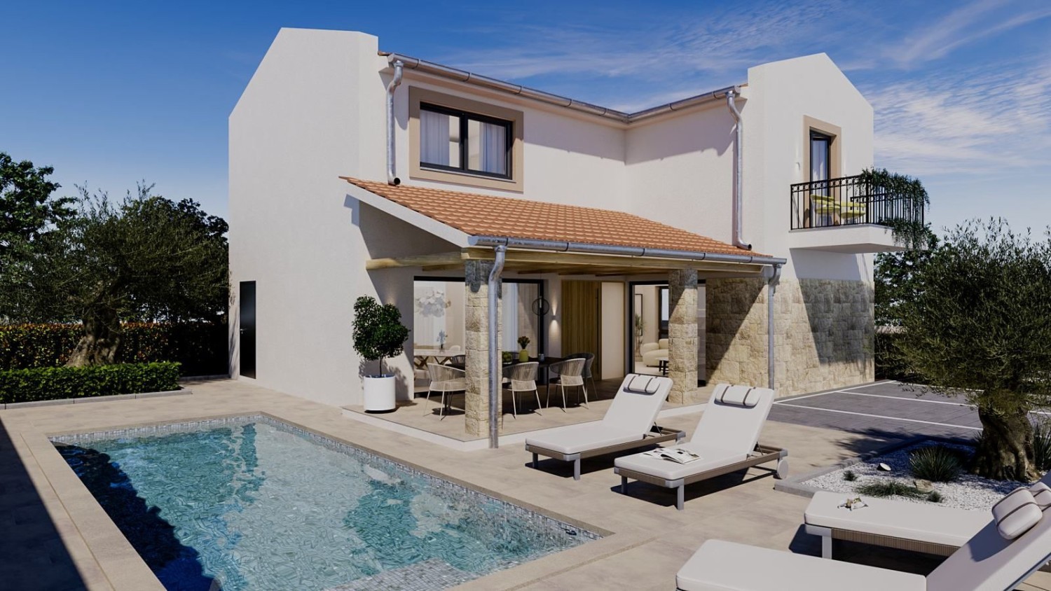 Kuća ima 174m2,okućnica 350m2 te bazen 28m2.