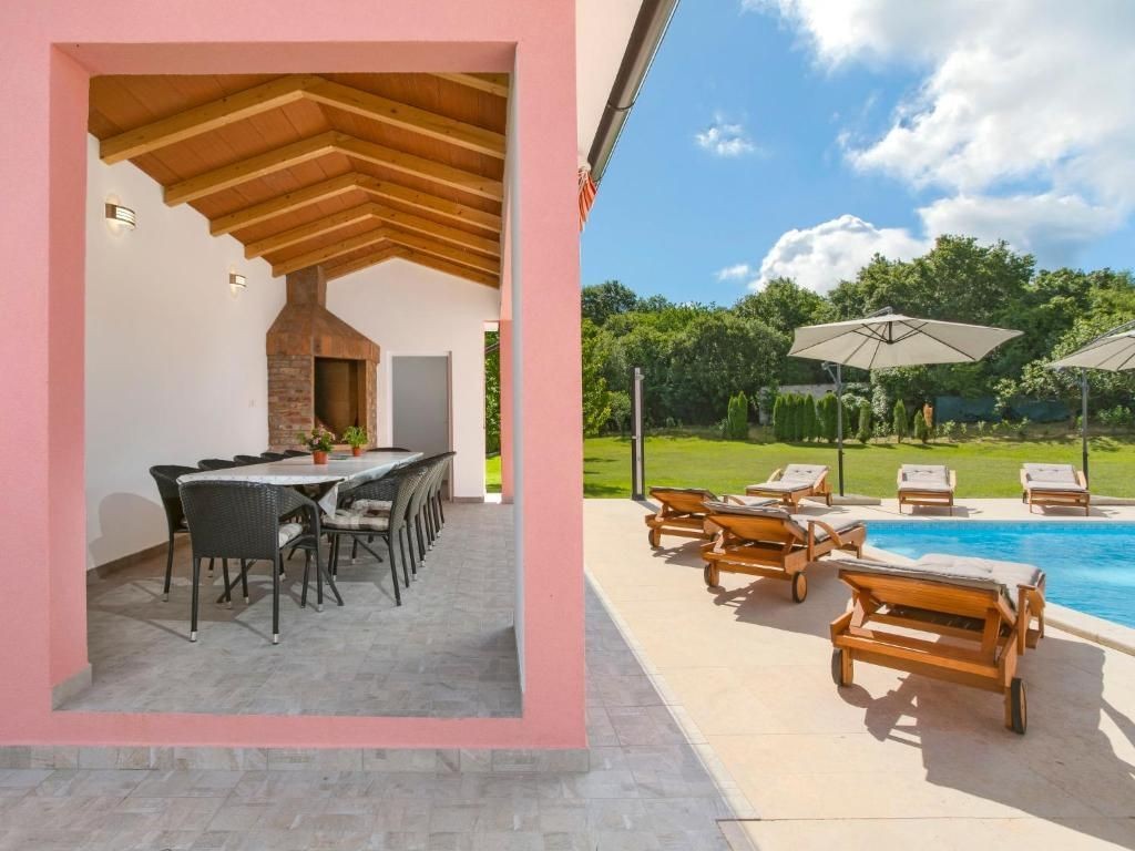 Na velikoj uređenoj okućnici nalazi se bazen sa sunčalištem, ljetna kuhinja i dječje igralište.