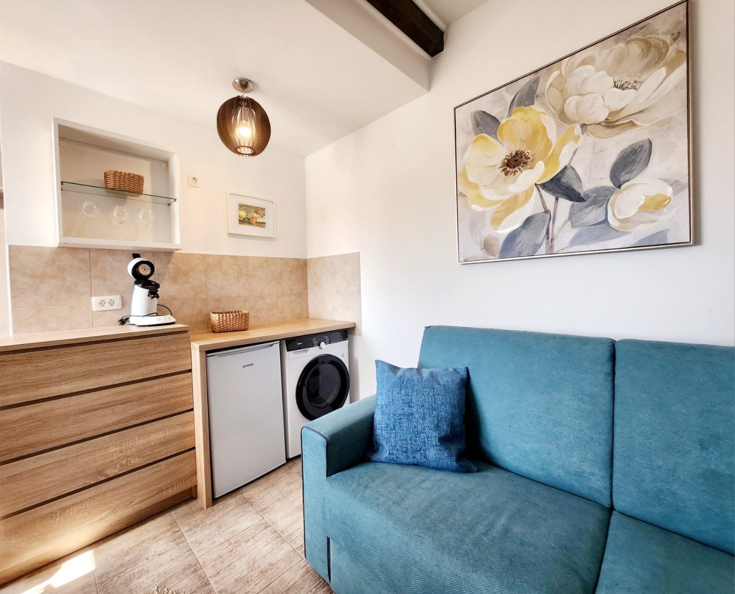 Prva stambena jedinica sastoji se od kuhinje sa blagovaonom, dnevnog boravka, spavaće sobe i kupaone.