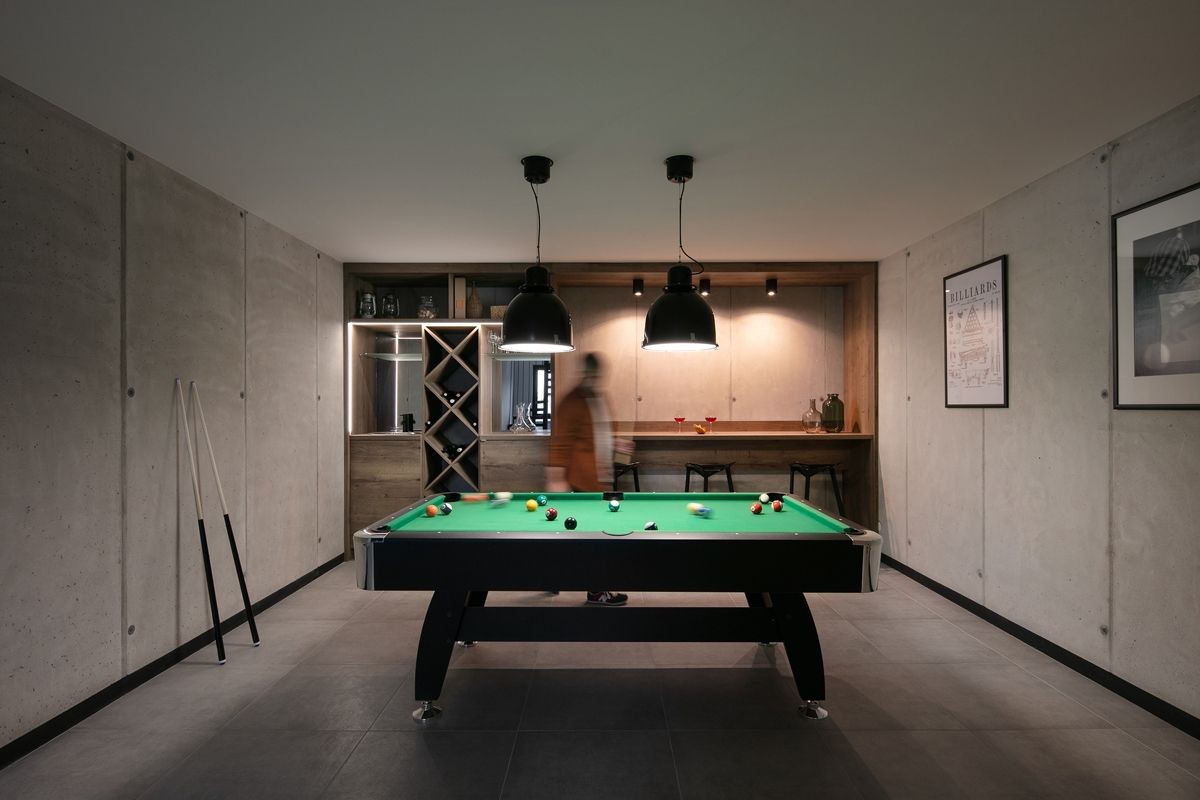 Podrum je površine 106 četvornih metara, te se sastoji od strojarnice za bazen, sobe za biljar, sobe za video igre, te prostorije namjenjene za wellness i fitnes.