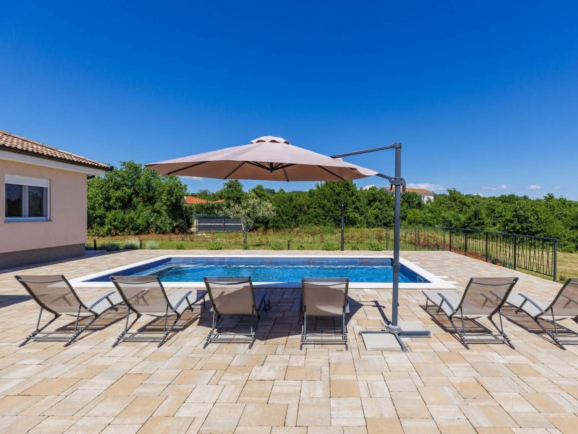 Na velikoj i uređenoj okućnici nalazi se bazen sa sunčalištem, te posebna prostorija uređena kao konoba, idealna za druženja, opuštanje i pripremanje omiljenih jela.