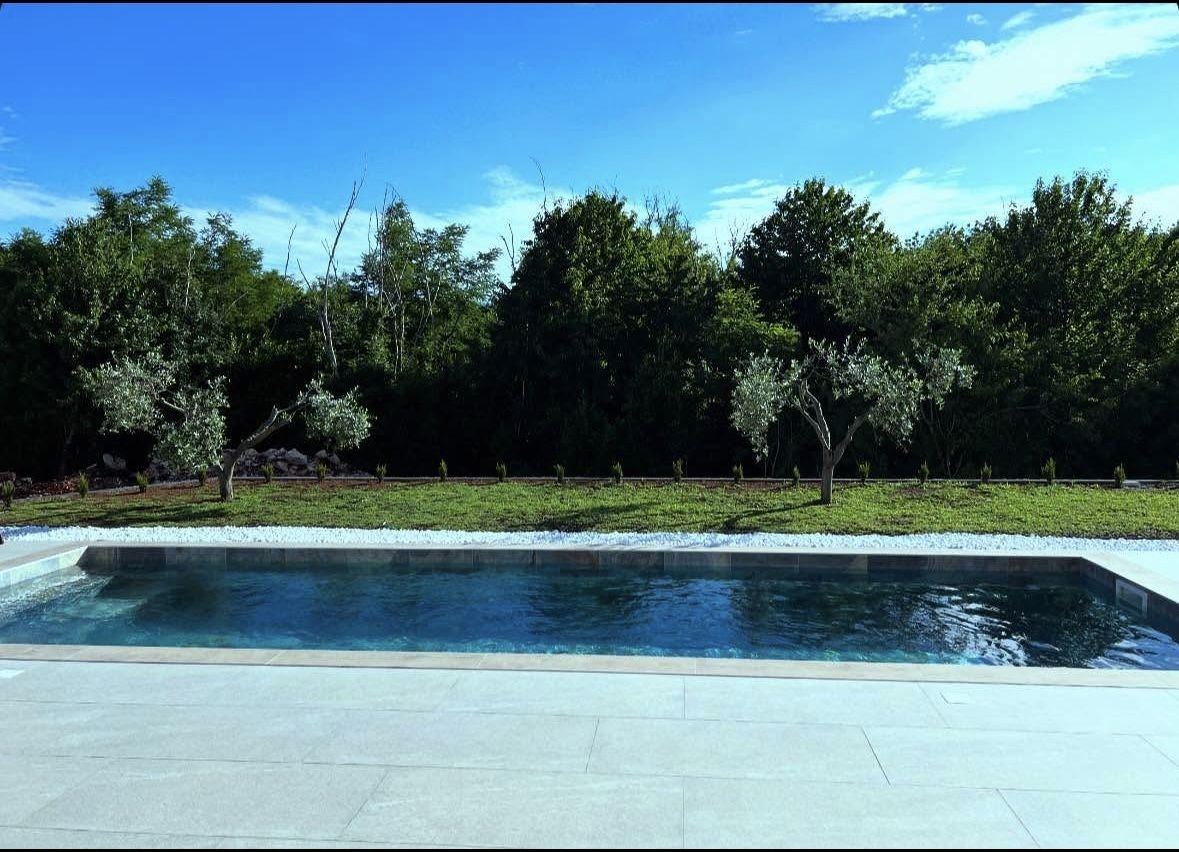 Bazen od 27 četvornih metara obložen je keramikom, kao i sunčalište.