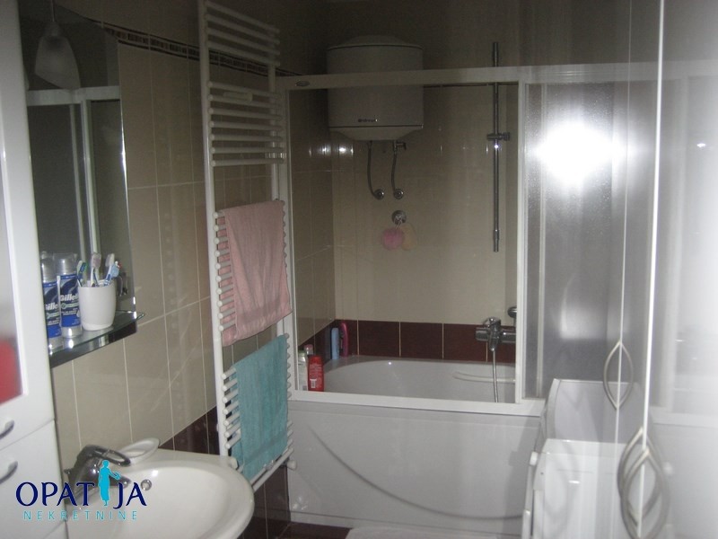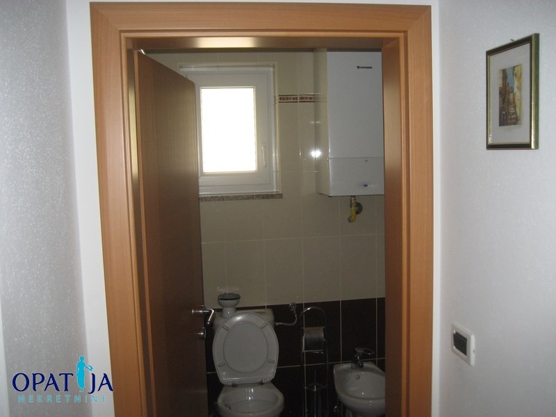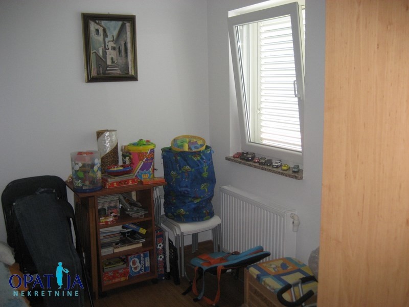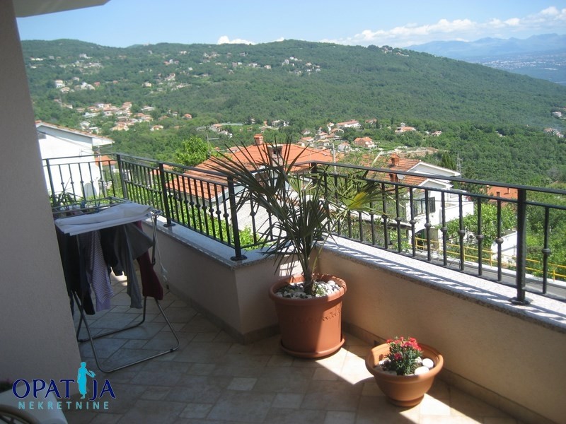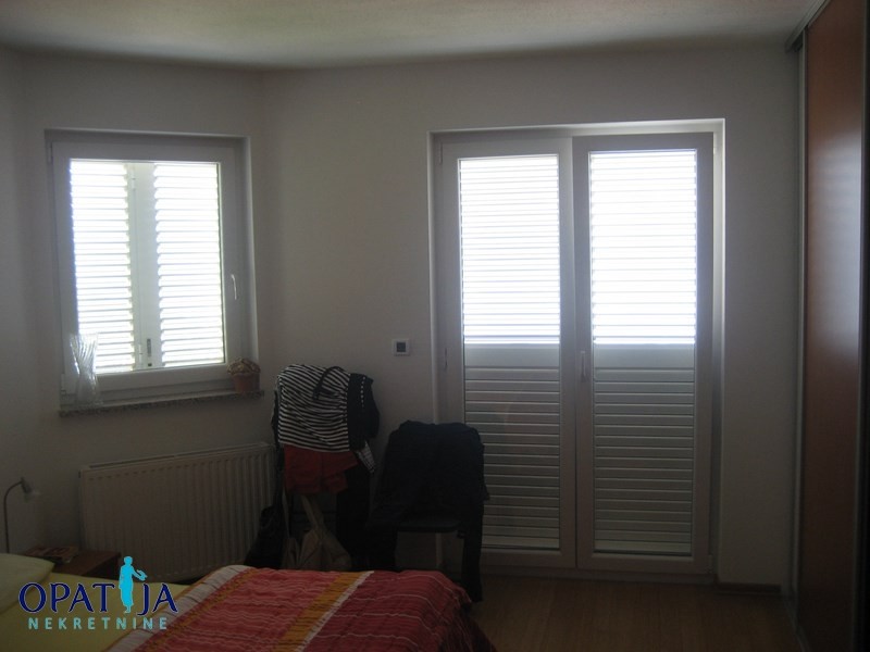 Prekrasan stan na atraktivnoj lokaciji u blizini Lovrana sa panoramskim pogledom na more i marinu Ičići. Nalazi se u vrlo kvalitetnoj urbanoj vili sa 3 stana izgrađenoj 2006 g. Stan ima 114 m2, a sačinjavaju ga dvije spavaće sobe, prostrani dnevni boravak sa kuhinjom i blagovaonom od 44 m2 iz kojeg se izlazi na balkon veličine 15 m2, kupaone, hodnika i konobe. Iz kuhinje se izlazi na popločenu i uređenu terasu veličine 25 m2 na kojoj se nalazi kamin. Ova terasa je velika pogodnost ovog stana naročito u ljetnim mjesecima kada se većina vremena provodi vani. Stan je vrlo funkcionalnog rasporeda i ukusno namješten. Kompletan namještaj ostaje u cijeni stana. U stanu je postavljeno etažno plinsko grijanje i klimatizacija.