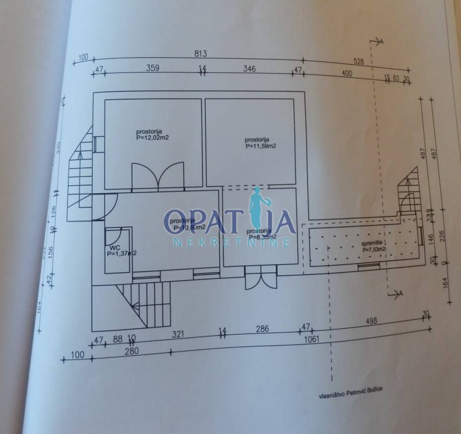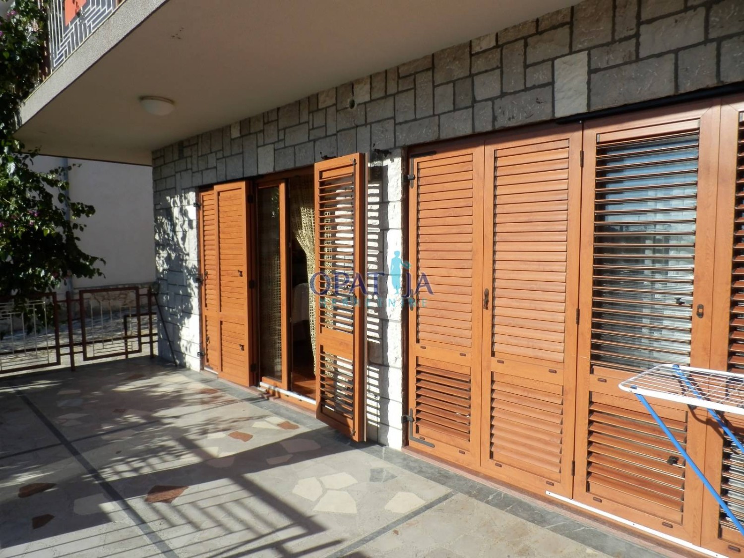 U suterenu prostor koji je služio kao radiona, + zasebna prostorija sa peći na pelete. U dvorištu je garaža te ljetna kuhinja s velikim kaminom koju se uz malo ulaganja može pretvoriti u prekrasan prostor za druženje s prijateljima. U prizemlju jednosoban stan s dnevnom sobom 50 m2. Iz dnevne i spavaće sobe izlazi se na veliku terasu ispred koje se nalazi pomno održavan vrt s mediteranskim biljem, palmama i cvijećem. Na katu sa zasebnim ulazom i prelijepom natkrivenom terasom nalazi se trosoban stan sa blagovaonicom i dnevnom sobom, kupaonicom, wc-om i balkonom koji se pruža uz cijelu južnu stranu sa pogledom na more. U potkrovlju treći stan sa svojim zasebnim ulazom visoko potkrovlje u koje su sprovedene instalacije ali je u roh bau trenutno. Vrlo lijepa nekretnina za veću obitelj ili obitelj koja bi se htjela baviti i iznajmljivanjem. Nekretnina je vrlo pogodna i za turističku eksploataciju. Ne propustite ovu nekretninu!