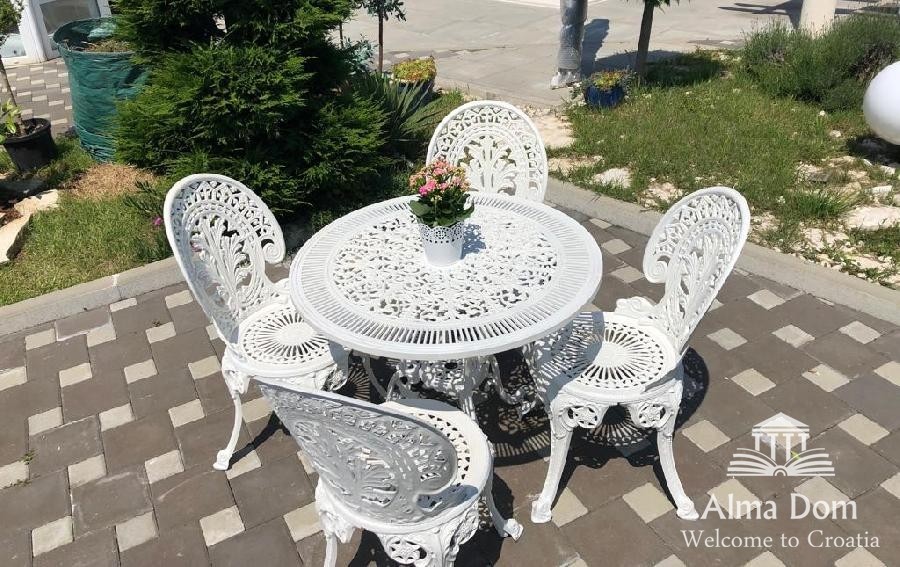 Iz dnevnih prostorija se izlazi u vrt na bazen i uređenu okućnicu.