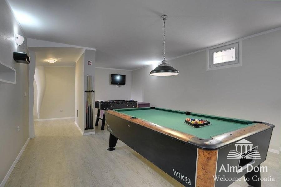 U podrumu je igraonica gdje se nalazi biljar, fitness soba, te dio za odmor i gledanje tv-a.