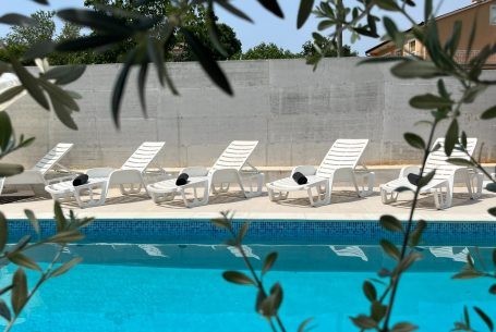 Uživajte u vlastitom bazenu od 33 m2, a parking je osiguran za 4 vozila.Godina izgradnje 2020. jamči novogradnju, dok protuprovalna vrata i klima osiguravaju dodatnu sigurnost i udobnost.
