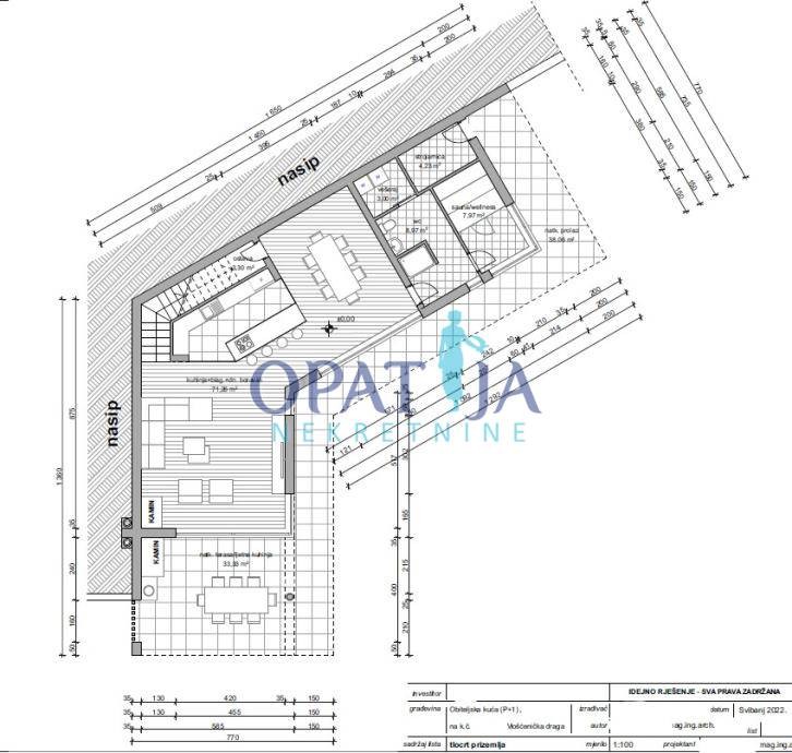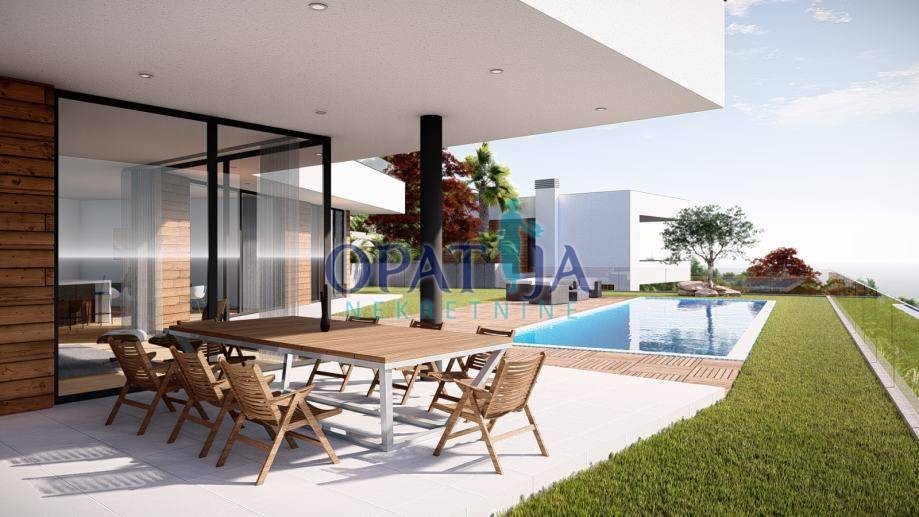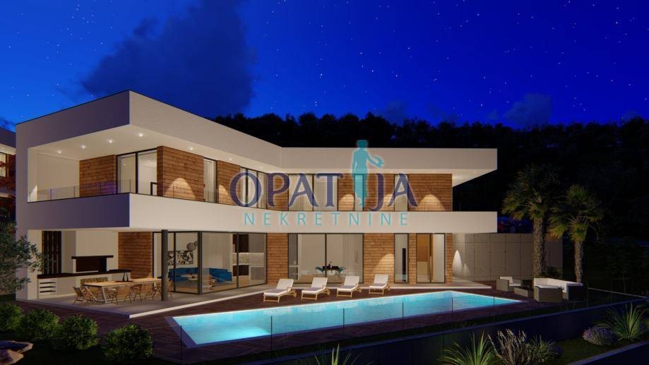 Mošćenička Draga građevinsko zemljište sa kompletnom projektnom dokumentacijom i pravomoćnom građevinskom dozvolom za raskošnu vilu, te plaćenim komunalnim i vodnim doprinosom. Zemljište se nalazi na svega 1 km (10 minuta hoda) od centra Mošćeničke Drage, odnosno jedne od najljepših plaža na Opatijskoj rivijeri. Vila je na 2 etaže ukupne površine 250 m2, a ima i lođu od 53 m2, te natkrivenu terasu površine 71 m2. U prizemlju vile nalazi se natkrivena terasa, dnevni boravak, kuhinja i blagovaonica, sauna, kupaona, vešeraj i strojarnica. Na katu su 4 spavaće sobe, od kojih svaka ima svoju kupaonicu. Ispred kuće je planiran bazen površine 50 m2. Predviđeno je podno grijanje pogonjeno dizalicom topline na struju, a za hlađenje će biti zadužen autonomni multi split sistem klima uređaja. Vila zadovoljava sve kriterije za kategorizaciju na 5 zvjezdica. Lokacija je izuzetno mirna, okružena zelenilom i s pogledom na more i otok Cres.