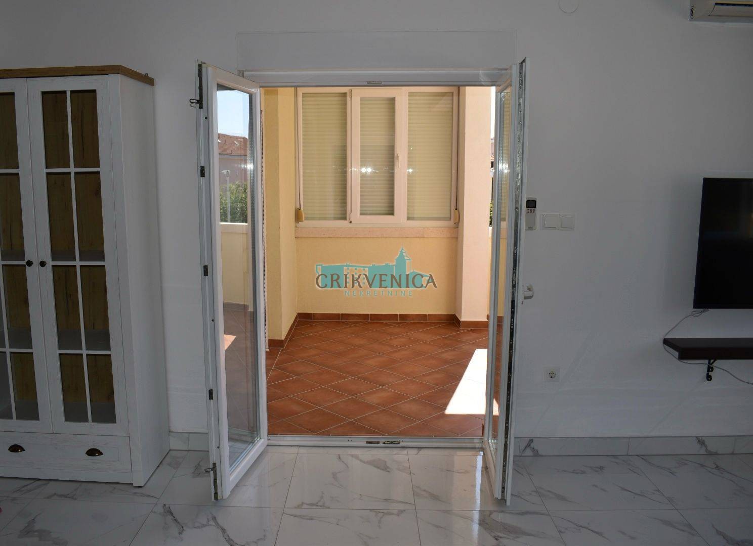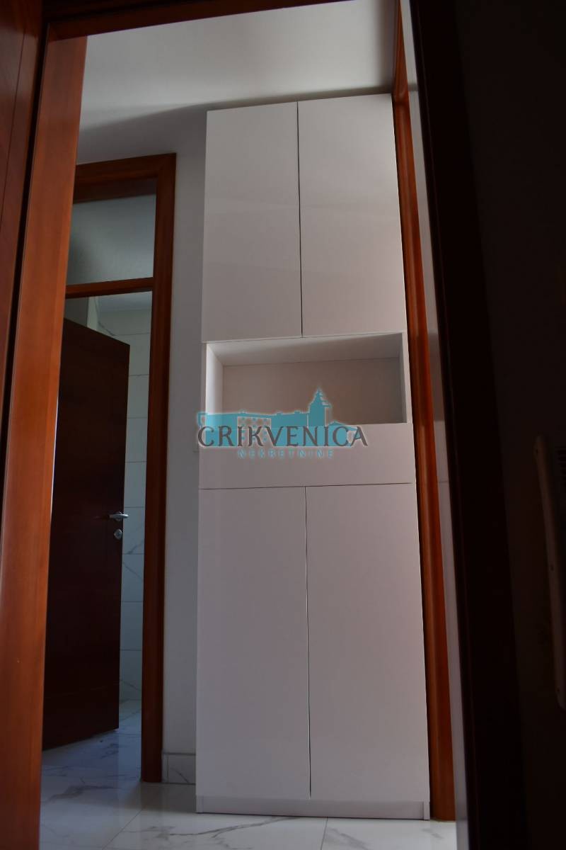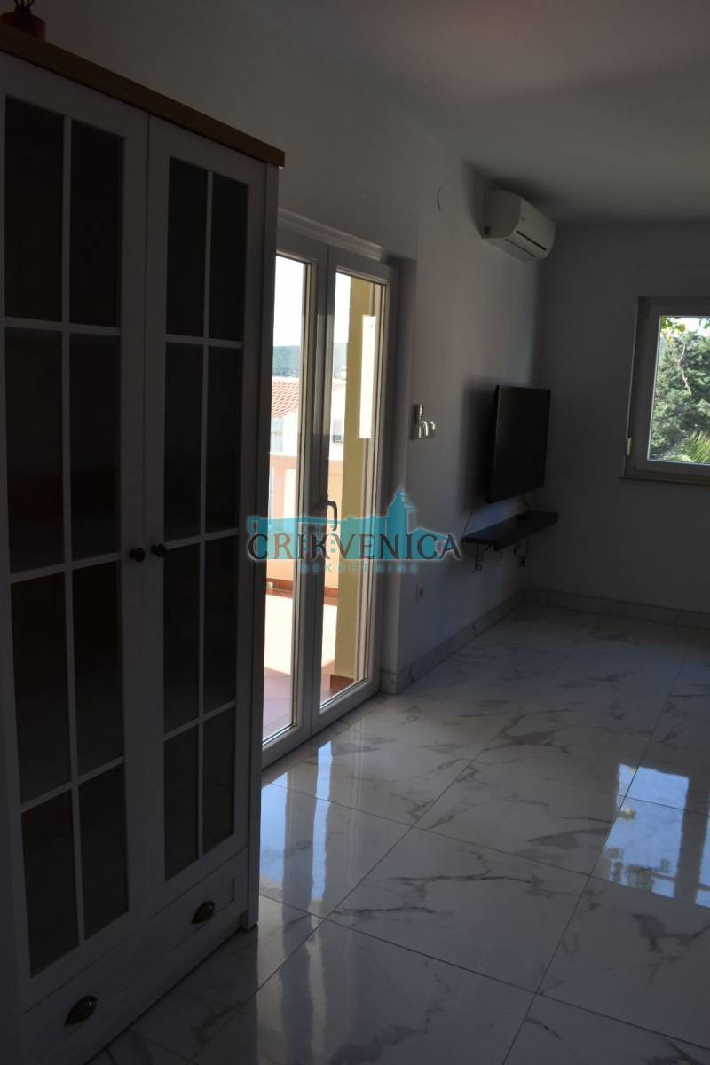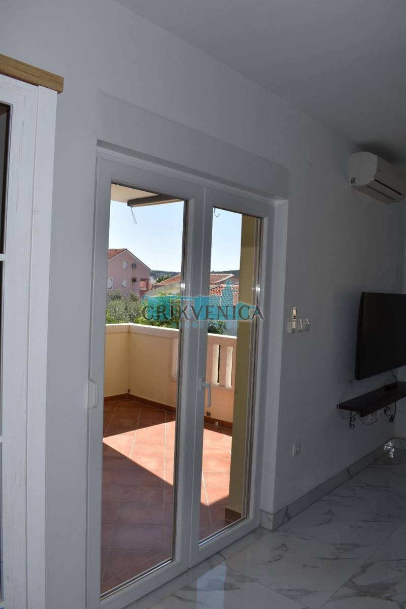 Na samo 50 metara od mora prodajemo stan na prvom katu stambene zgrade. Stan je dvosoban sa DB, kuhinjom, kupatilom, loggiom, spremištem u podrumu te pripadajućim parkingom. Prodaje se namješten, a doslovno je sve novo, jer se jako malo boravilo u stanu.