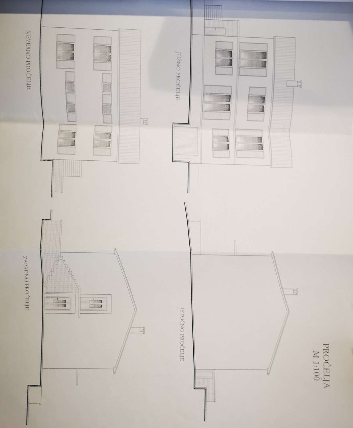 Na drugoj etaži nalaze se tri spavaće sobe,kupatilo,wc,dnevni i kuhinja.