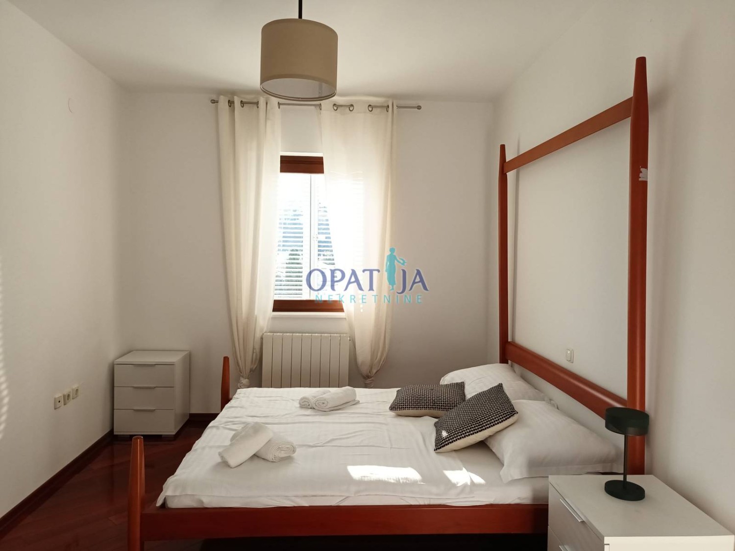 Smješten u mirnoj privatnoj ulici u Ičićima, samo 2 minute hoda od plaže, ovaj prekrasan apartman s 4 spavaće sobe dostupan je za najam na drugom katu novoizgrađene zgrade.