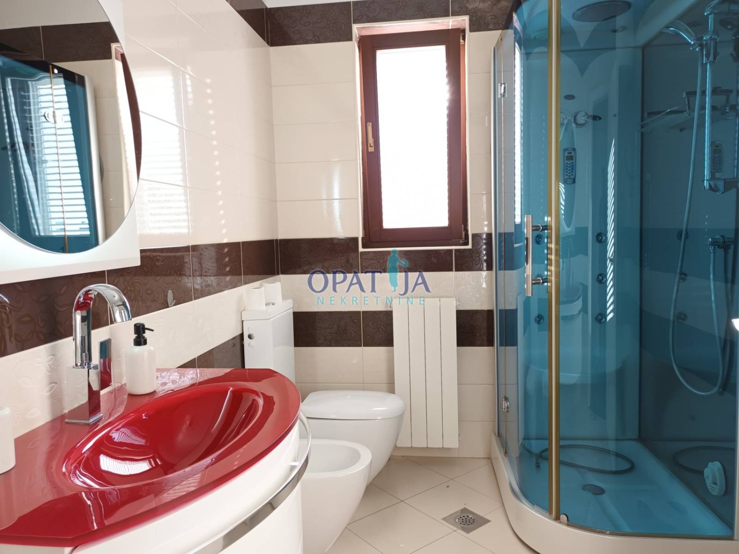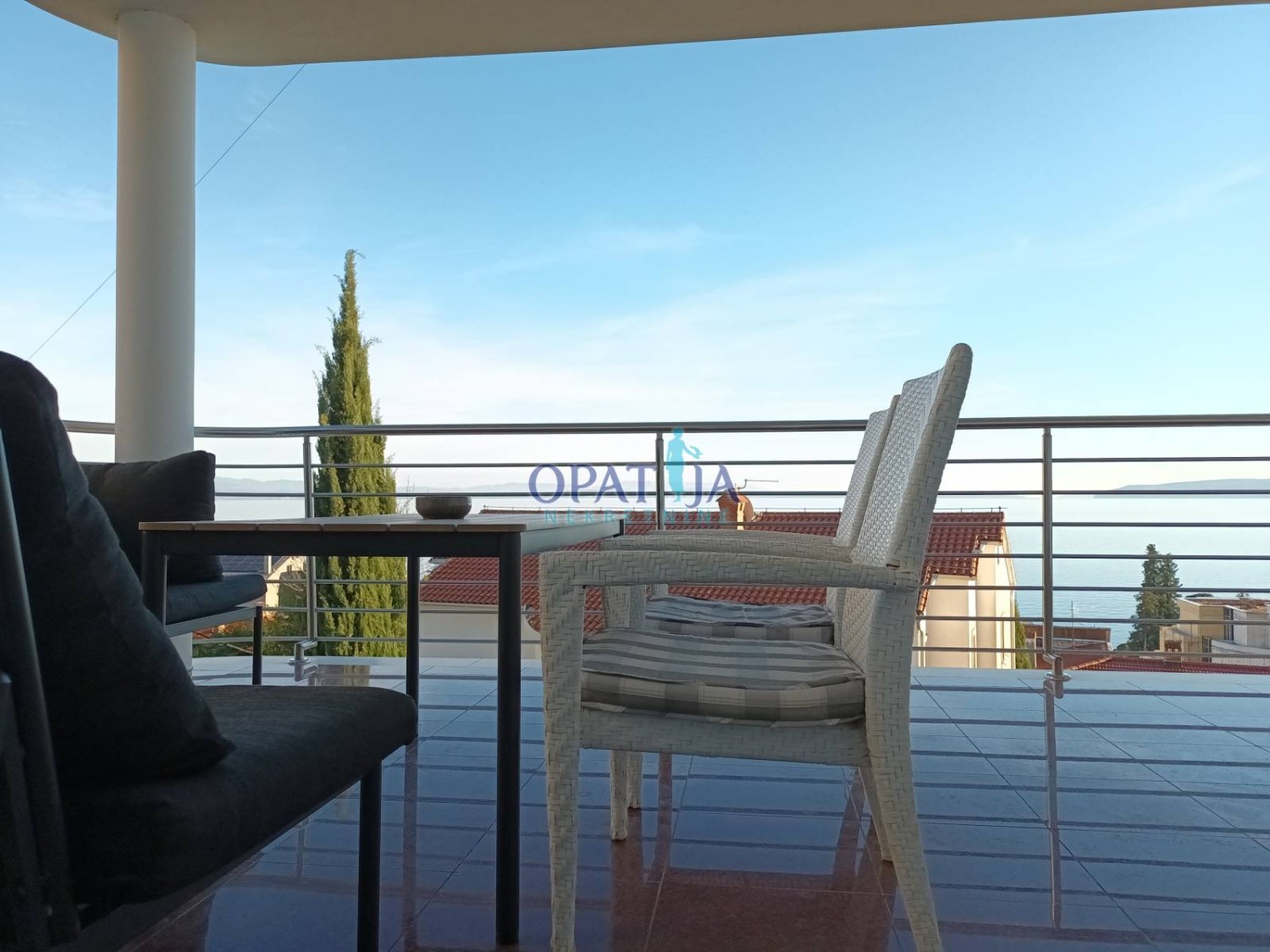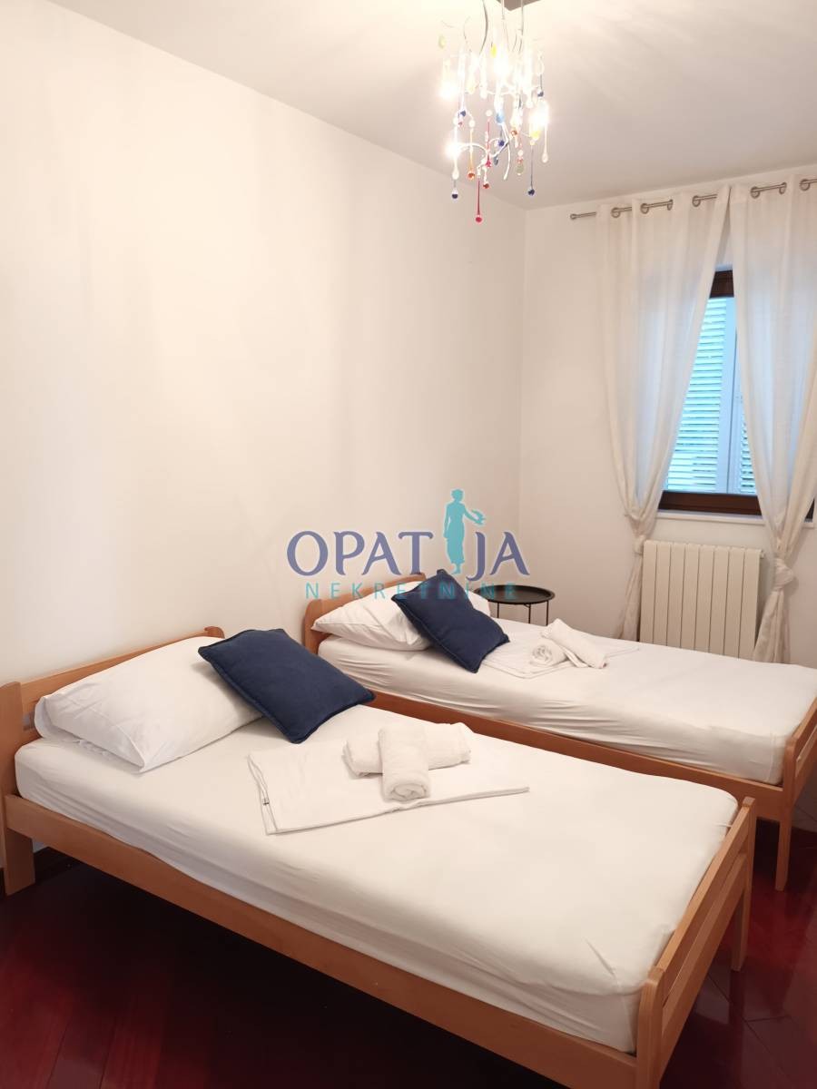 OPATIJA, IČIĆI – Dugoročni najam, samo 100 metara od plaže i poznatog Marriott Resorta, s bazenom, saunom, panoramskim pogledom i 2 natkrivena parkirna mjesta