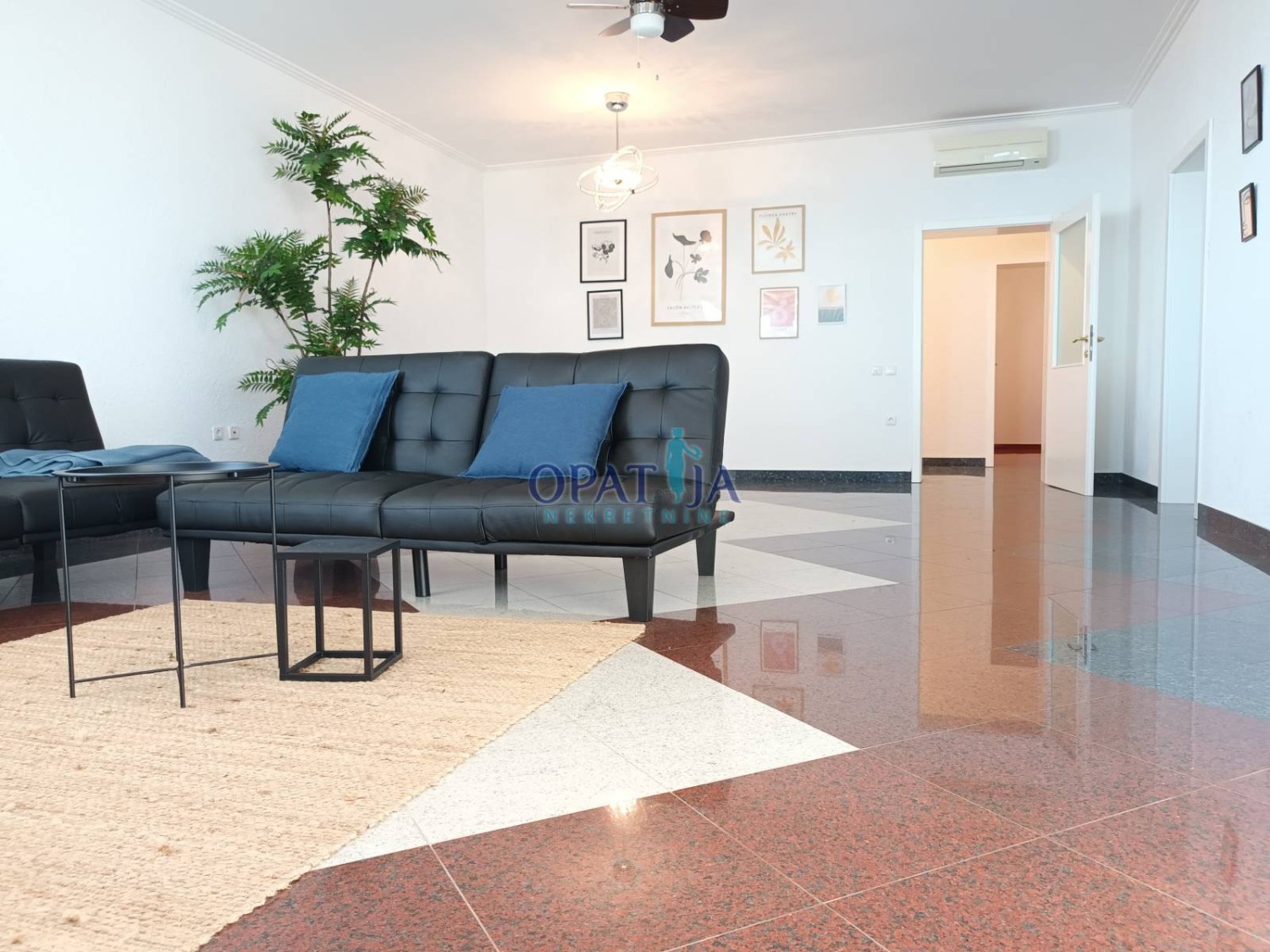 Apartman se može pohvaliti visokokvalitetnim namještajem i nudi ukupnu površinu od 182 m², uključujući 170 m² stambenog prostora. Sastoji se od četiri spavaće sobe, dnevnog boravka, kuhinje, dvije kupaonice, hodnika s ormarom, ostave, ulaznog prostora i velike natkrivene terase s panoramskim pogledom na more.