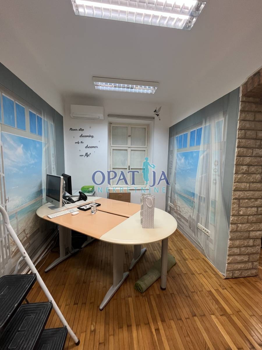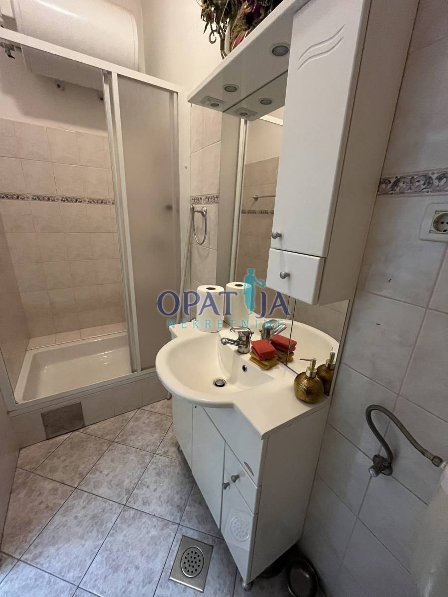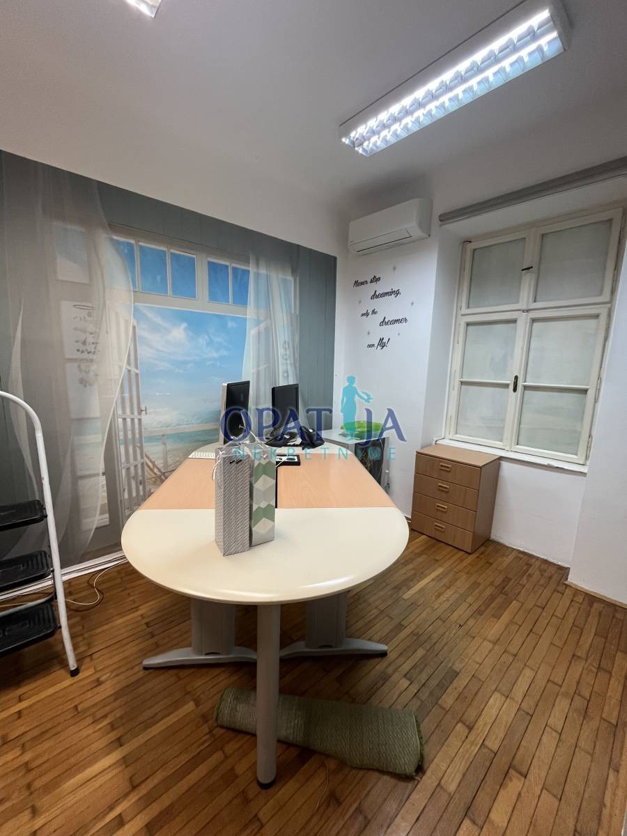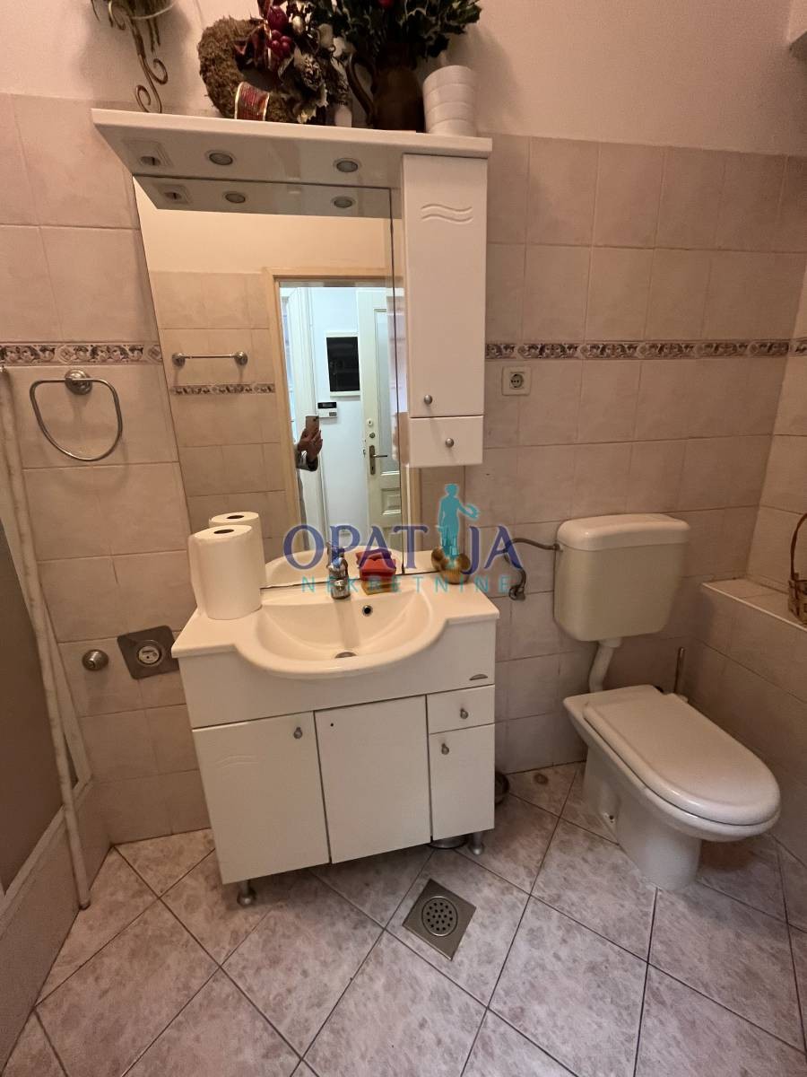 Stan u strogom centru Opatije veličine 60 m2 sa terasom i drvarnicom. Nalazi se u stambenoj zgradi u visokom prizemlju. sačinjavaju ga ulazni hodnik, kupaona, kuhinja i dvije sobe. pripada mu i mala ostava na istoj etaži. Stanu je potrebna lagana adaptacija. Zbog blizine svih sadržaja stan je vrlo interesantan i za starije osobe jer nema puno stepenica.