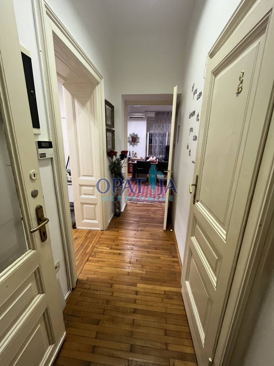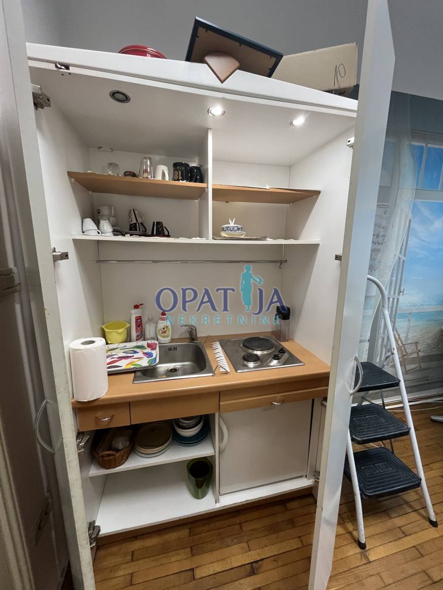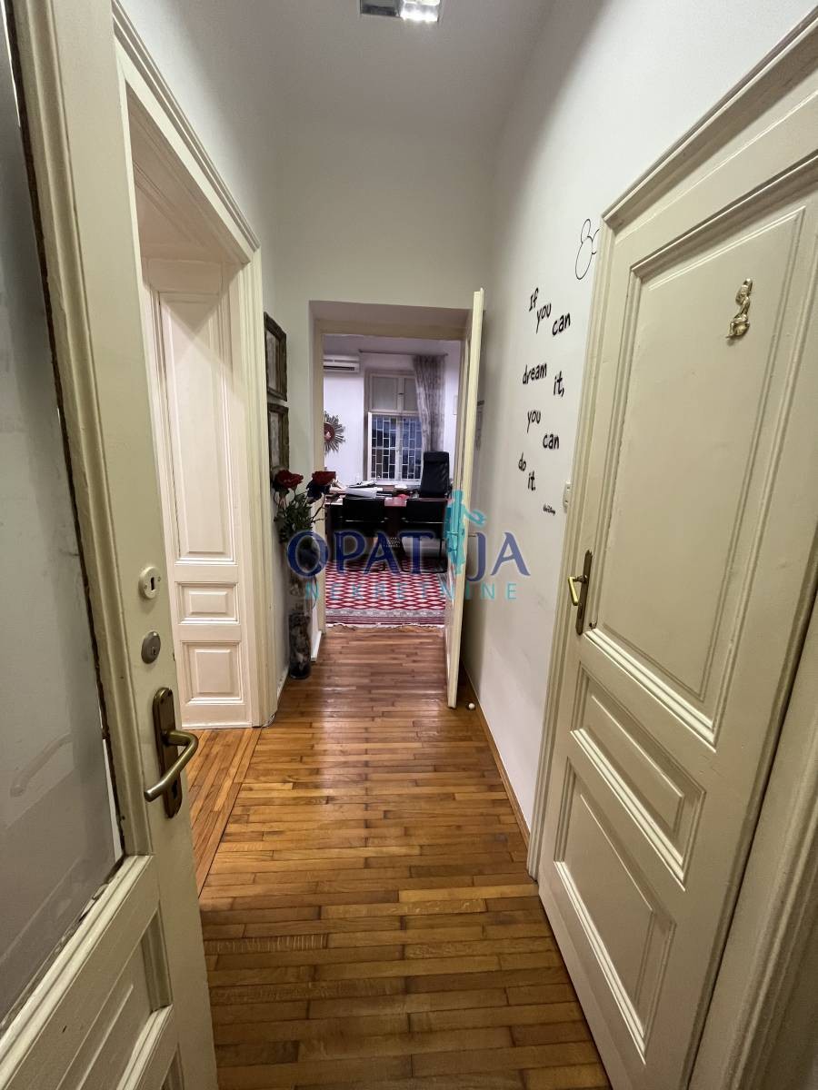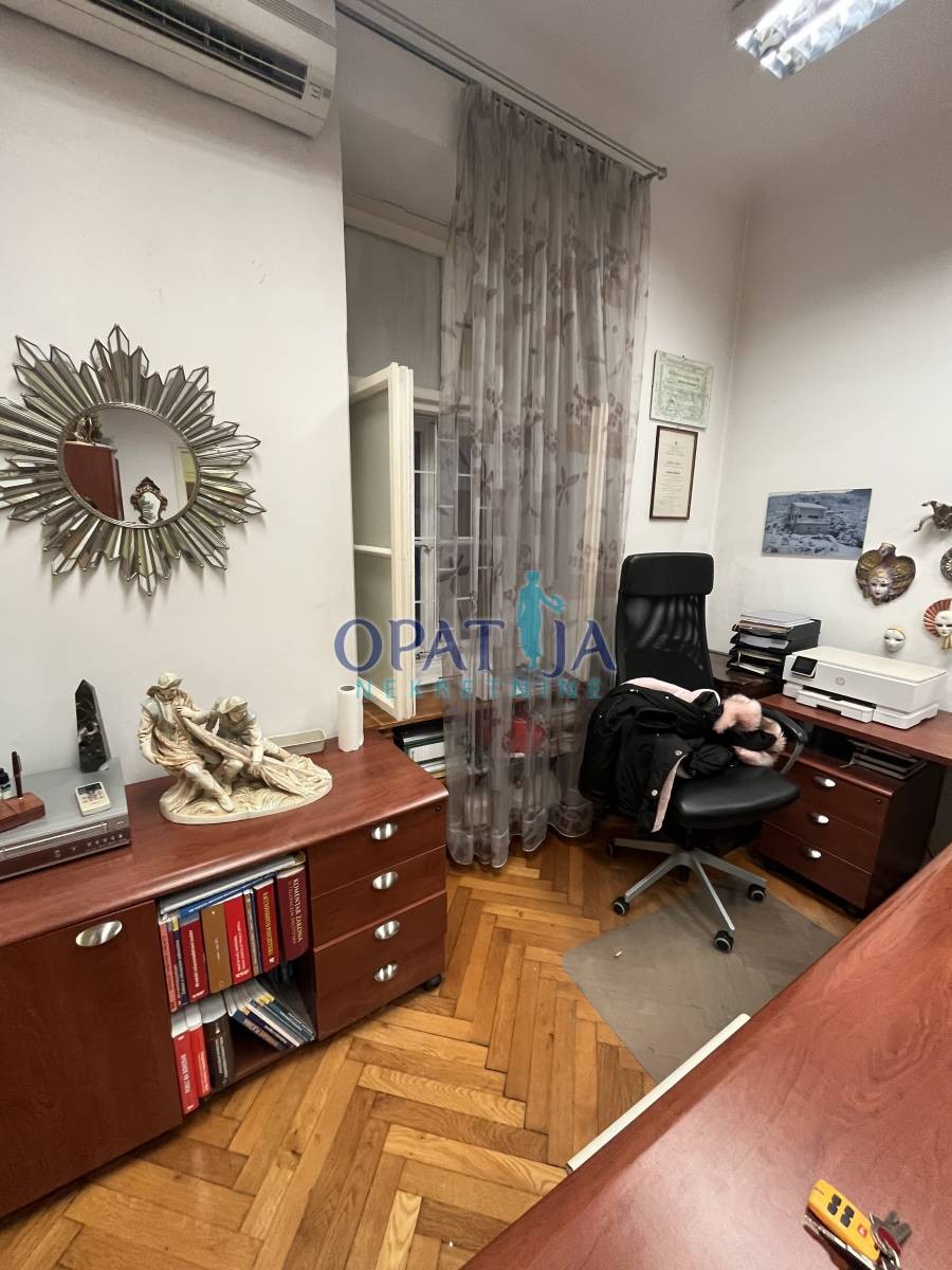 Stan u strogom centru Opatije veličine 60 m2 sa terasom i drvarnicom. Nalazi se u stambenoj zgradi u visokom prizemlju. sačinjavaju ga ulazni hodnik, kupaona, kuhinja i dvije sobe. pripada mu i mala ostava na istoj etaži. Stanu je potrebna lagana adaptacija. Zbog blizine svih sadržaja stan je vrlo interesantan i za starije osobe jer nema puno stepenica.