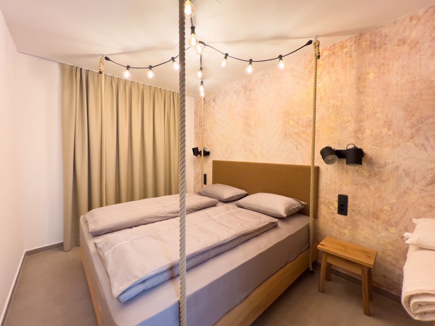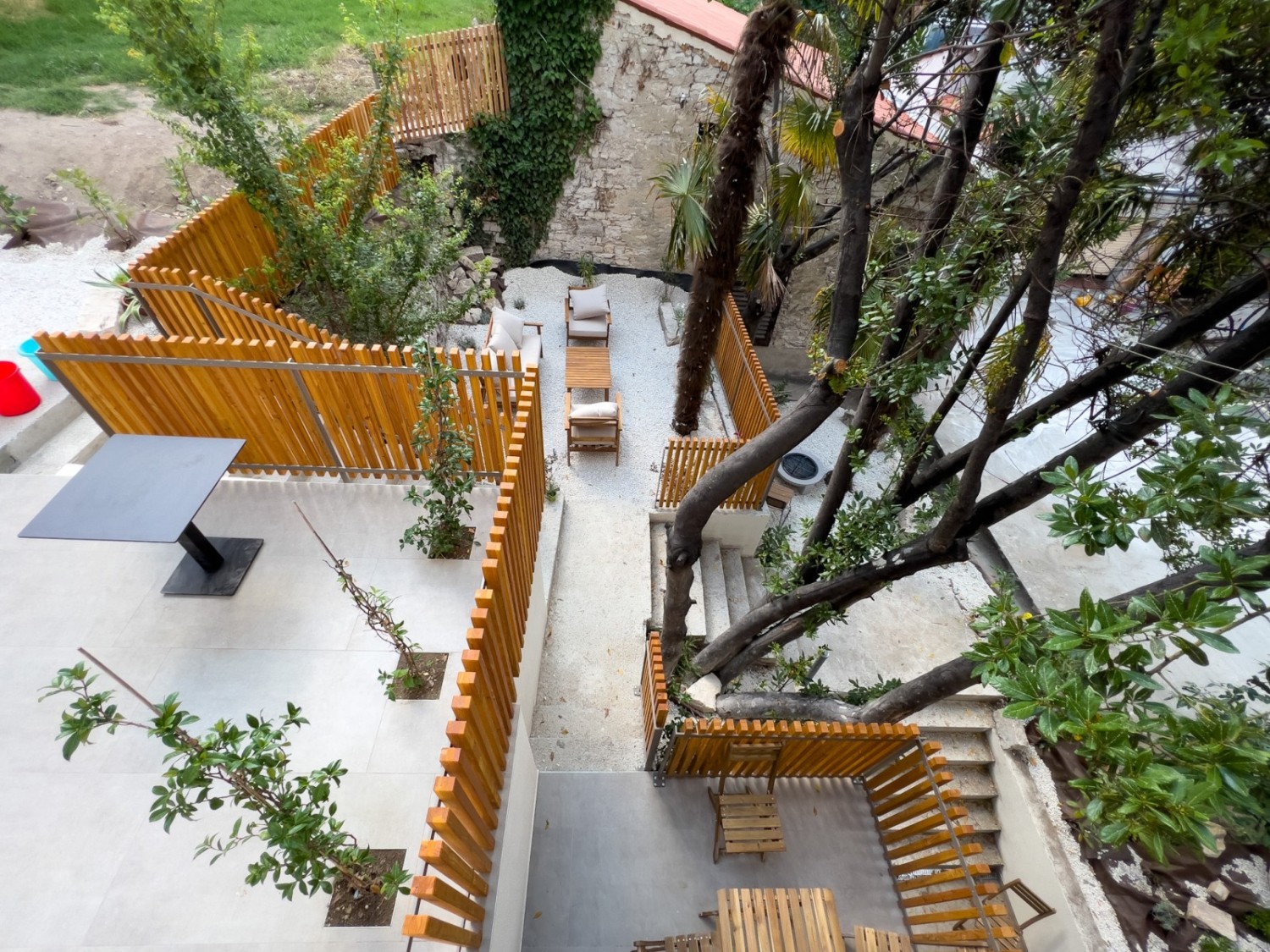 Veća kuća sastoji se od 11 soba, svaka sa svojim kupatilom te zajedničkog dnevnog boravka sa kuhinjom i izlazom na zajednički vrt U suterenu se nalazi vešeraj.