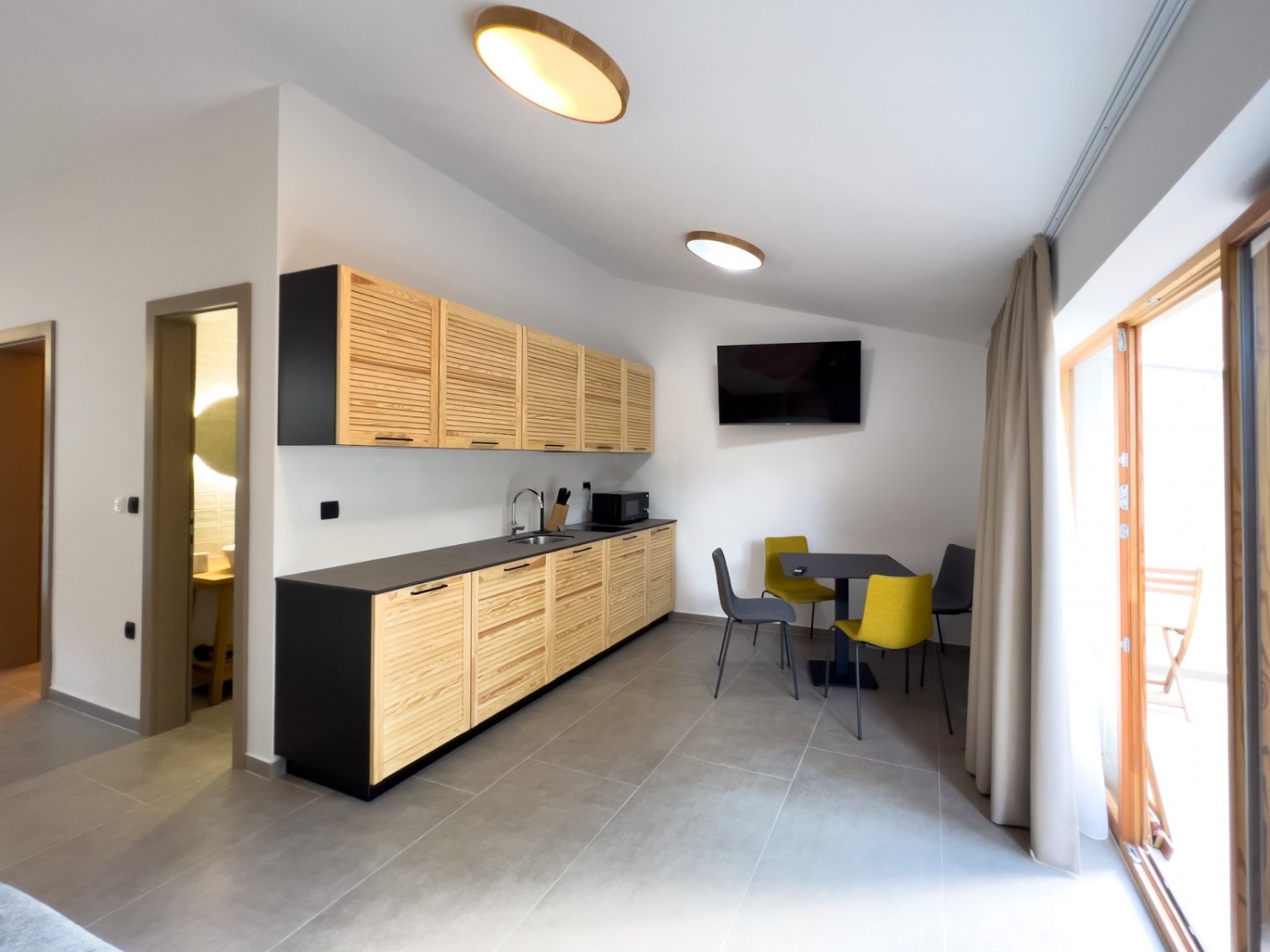Manja kuća sastoji se od tri apartmana koji imaju po jednu spavaću sobu, kupatilo, kuhinju dnevni boravak i vlastitu terasu.