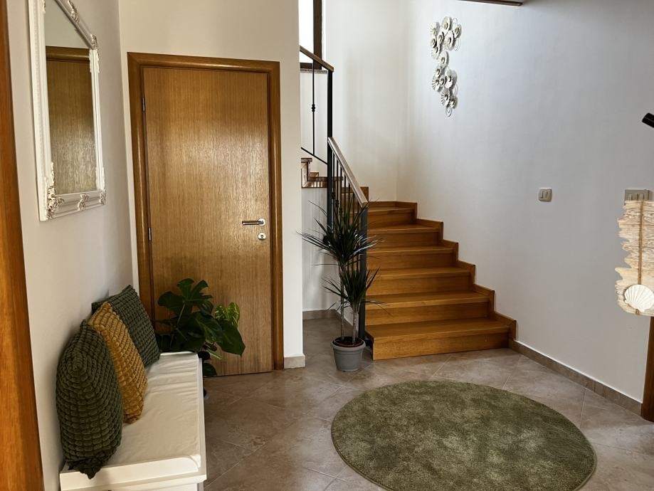 U prizemlju se nalazi hodnik, dnevni boravak sa blagovaonom i izlazom na natkrivenu terasu, kuhinja, spavaća soba i kupaonica. Unutarnje stepenište vodi na kat na kojem se nalaze 2 spavaće sobe obje sa izlazom na loggiu i kupaonica.