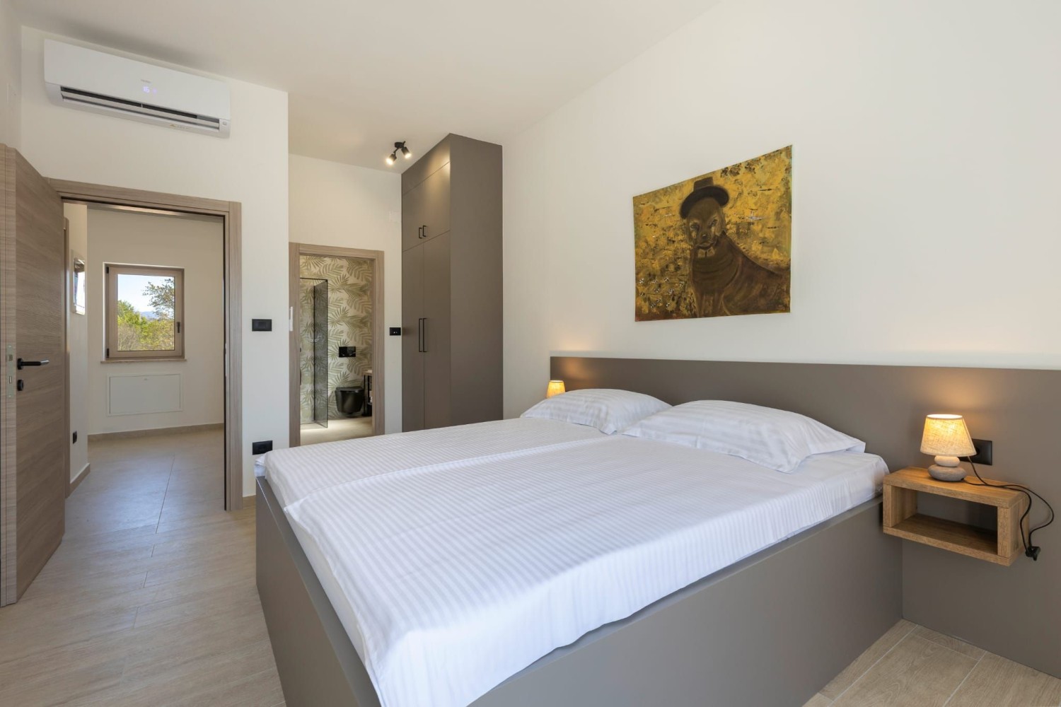 Kat se sastoji od dvije spavaće sobe svaka sa vlastitom kupaonicom te izlazom na terasu natkrivenu pergolom sa otvorenim panoramskim pogledom.
