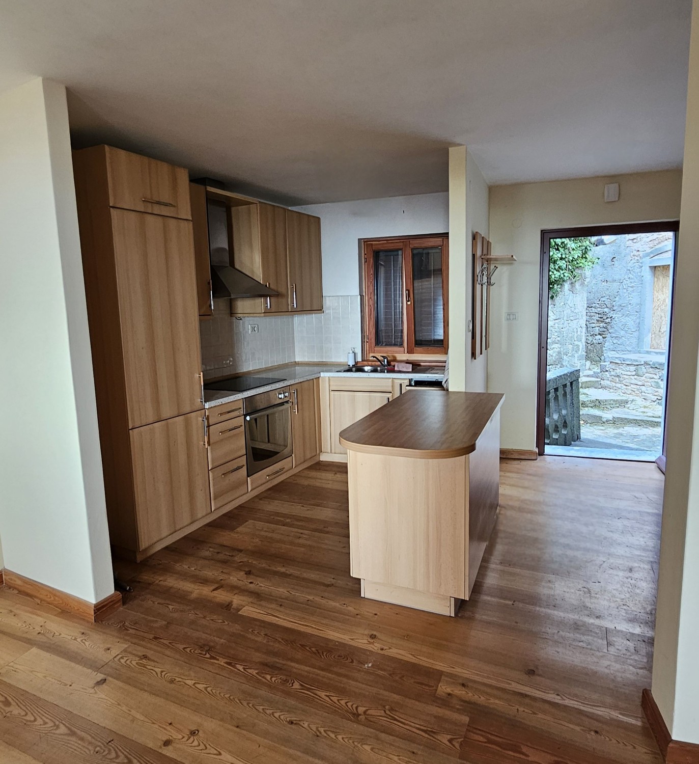 - prvi kat:ulazni hol i veliki osunčan open space prostor sa kompletno opremljenom kuhinjom i prostranim dnevnim boravkom sa pogledom na more