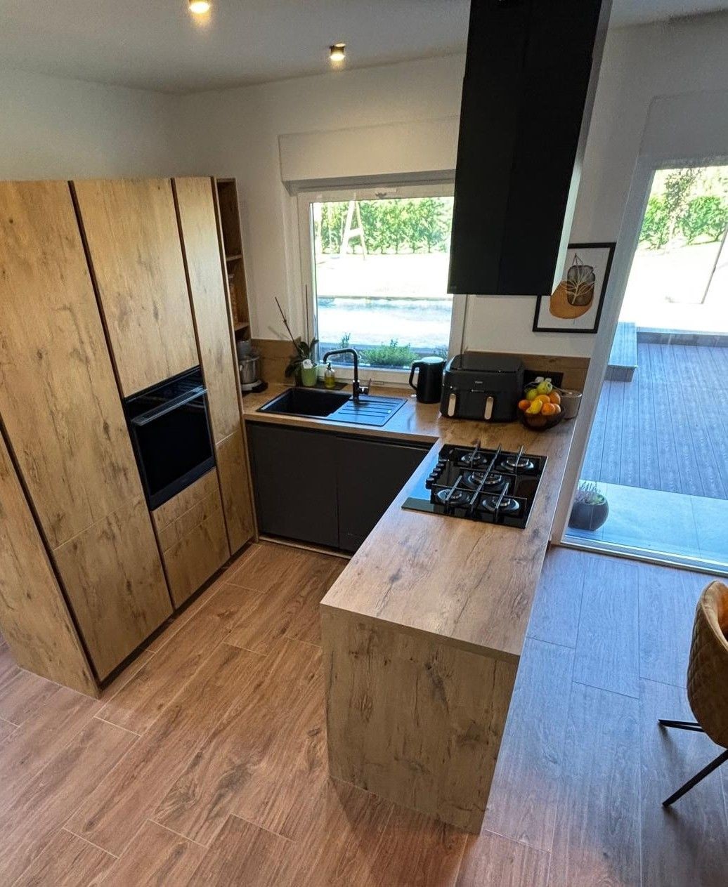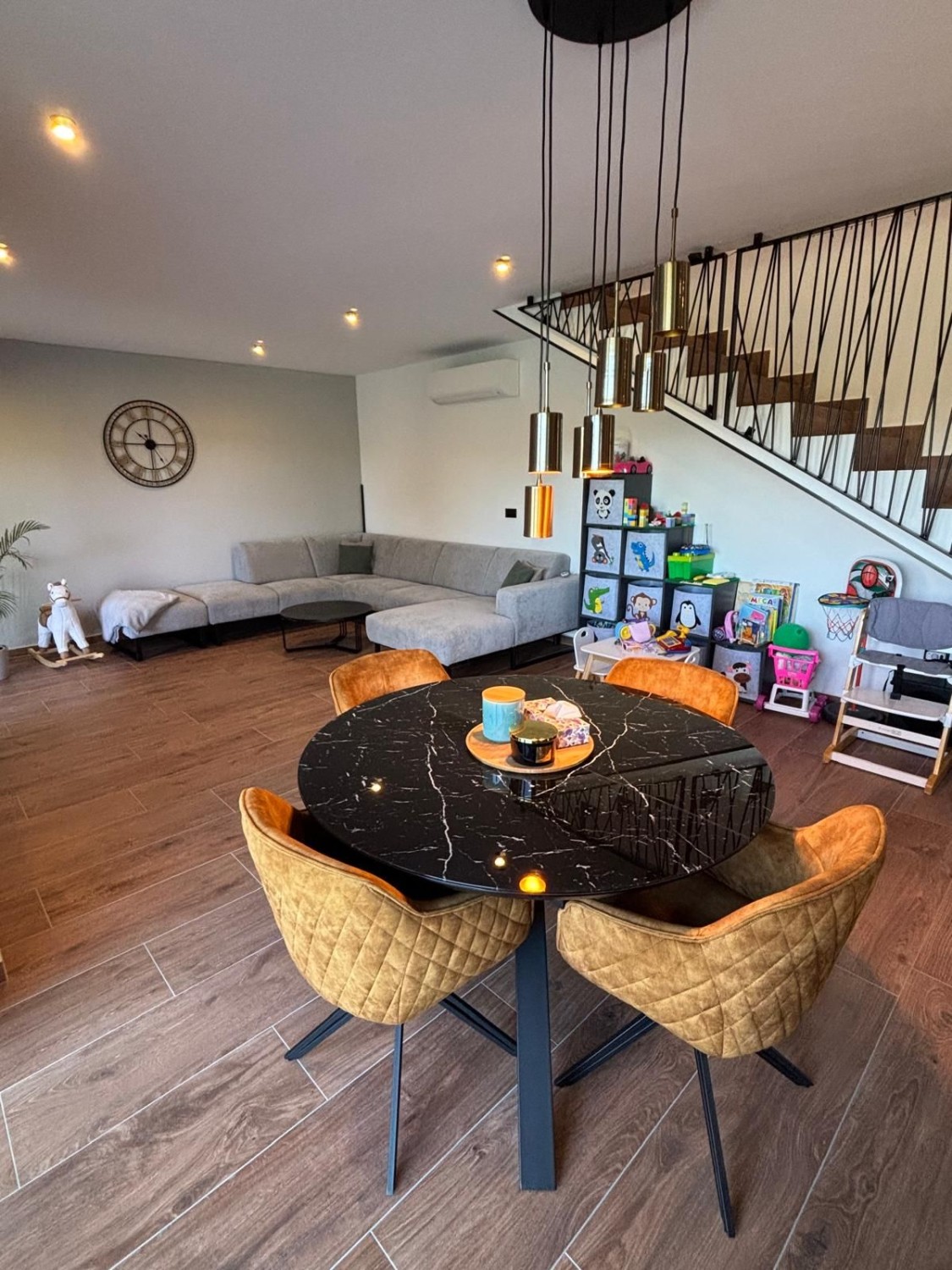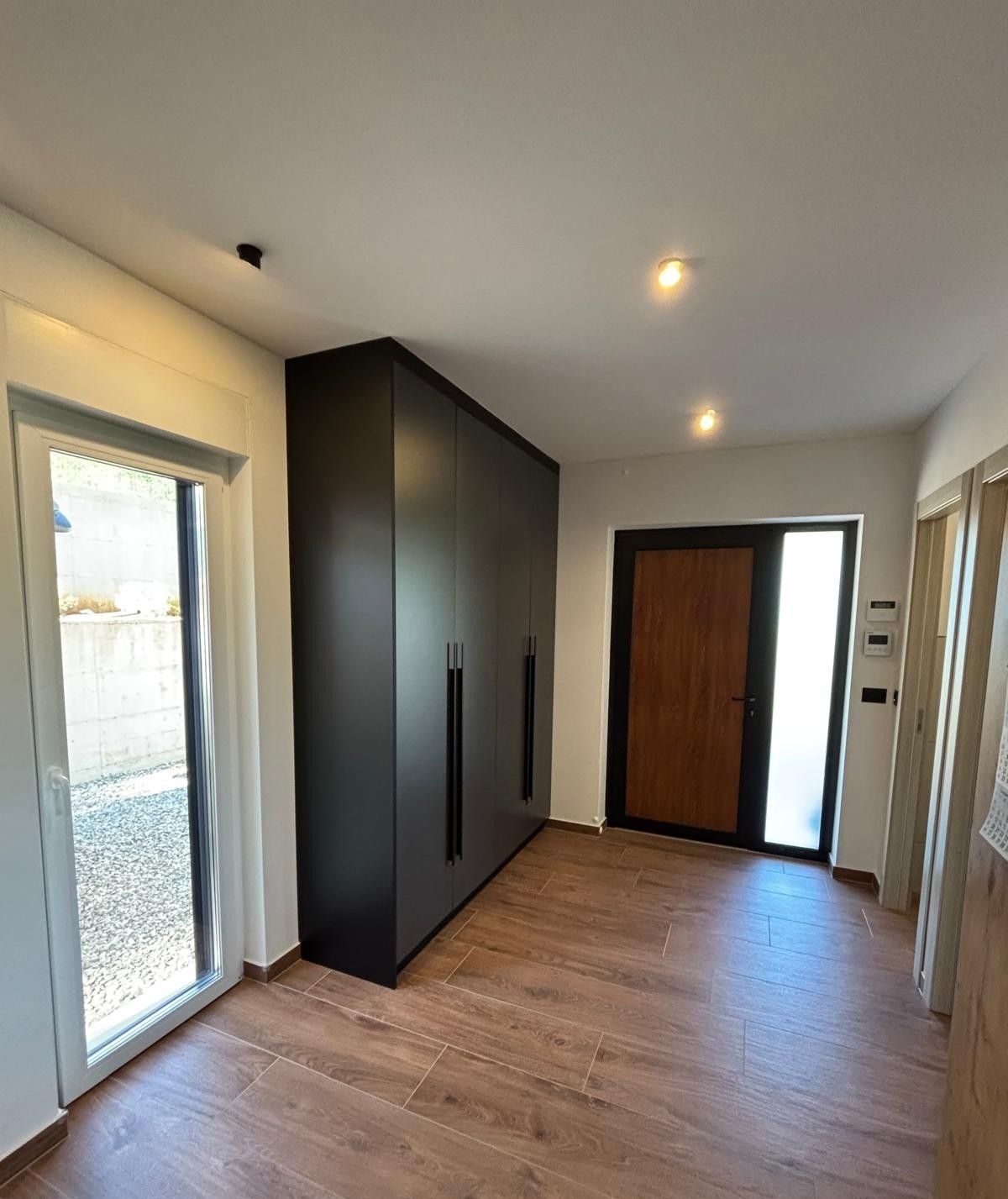 Ispred kuće nalazi se prostran parking.Dizajnerski osvijetljen ulaz vodi u open space dnevni boravak,kuhinju i blaovaonu.