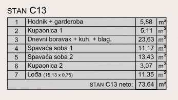 Stan C13, površine 73.64 m2, nalazi se u zgradi C.