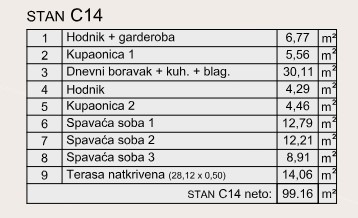 Stan C14, površine 99.16 m2, nalazi se u zgradi C.