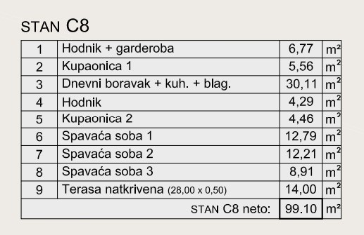 Stan C8, površine 99.10 m2, nalazi se u zgradi C.